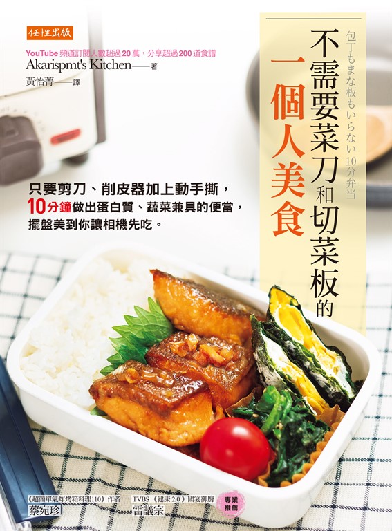 內容簡介 ◎想吃好料,卻沒時間煮飯,家裡的微波爐、烤箱都成了擺設。◎我的廚房窄到切菜板會掉進洗手檯,更別說要擺各種食材與鍋碗了。 ◎天生手拙不會用菜刀,沒關係,用手撕也能做出美味! 作者 Akarispmt's Kitchen是位藥劑師, 廚房窄小,也忙到沒時間做飯,但她還是想要吃美食,更不想天天外食, 因此發明了不需要菜刀、切菜板的10分鐘就能做好的美食, 只需要14cm平底鍋、烤箱、微波爐,即使是新手,也能快速上手, 今天晚餐、明天午餐,就看這本: ◎可以騙過餐廳大廚的10分鐘便當技巧 作者不用菜刀、切菜板,只要料理剪刀和削皮器,甚至手撕也可以, 搭配軟管調味料,空出一隻手就能處理, 再搭配乾貨和好撒粉的瓶裝容器搭配塑膠袋,均勻裹粉不髒手。◎同時使用3樣廚具,就能玩出各種組合 只需要14cm平底鍋、烤箱、微波爐3樣廚具, 今天想補充蛋白質,可以做鱈寶豆腐漢堡排; 明天要開胃,就選塔可風味雞柳捲, 突然想吃滿滿蔬菜,就來點鹽味昆布鮪魚義大利麵。 作者親自圖解、示範,如何使用3樣廚具就能天天換菜色。 ◎蔬菜、雞蛋、蒟蒻絲,配菜也超級搶戲 每天帶便當,但配菜總是重複那幾道? 光是雞蛋,作者就能做蛋包飯、烘蛋,甚至日式豚平燒、法式鹹派; 青椒、綠花椰菜、高麗菜,常見蔬菜都能做出3道以上的不同風味。 青椒茄子味噌燒,是最佳的下酒菜;疲勞時,來一份小松菜拌芝麻醋; 想要越吃越涮嘴,推薦小松菜拌豆皮、紅紫蘇馬鈴薯沙拉。 13樣普通食材,也能煮成搶戲配菜! 還有,便當不只要食物美味,怎麼擺主食,配菜和飯才不會全垮在一起? 作者有解! 本書有10分鐘完整做法,全圖解120道簡單食譜,寫給三餐吃膩外食、想吃好料、卻沒時間好好煮飯的你。