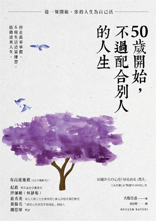 內容簡介 50歲以前,都在為別人拚命,為別人累積來到50歲,身心熟成得剛剛好的年紀正是時候,重新盤點人生秩序練習把不必要的重擔,一一放下這一刻開始,你的人生為自己活●日本最幽默、最會講故事的和尚,教你笑迎人生五十歲●真言宗密藏院住持名取芳彥,教你有態度、有高度的人生智慧課●什麼是中年?「年」紀界於歲數的「中」段,簡稱中年。傳說中擺離了懵懂無聊的青春期、爆肝看人臉色的青年期,距離退休的老年期還有點遙遠。是最剛好、熟成的美好年紀!「準備好的輕鬆,讓你迎接50歲的優雅。」──律師娘林靜如享受吧!人生最美好的階段五十歲是人生最美好的歲數,這時開始,你應該多多問自己開不開心。這也是最適合進行生命盤點的時期,除了心頭排名第一順位、無論如何都不想放棄的,其餘的人事物(=執著=累贅)全都可以捨棄。本書收錄98則讓你有氣魄、不妥協,表現人生高度又不孤獨的熟年智慧,面對人生五十歲,日本人氣和尚幽默解讀,分享超然的人生哲學,他說:‧有些人際關係還是結束了比較好,沒有用的人就清一清吧‧父母也很老了,孝道,做做表面功夫就好‧大風大浪都看過了,還有什麼人好怕的‧房貸快繳清了,子女長大了,另一半豬隊友也給他放生了他認為50開始,想要這樣過、那樣活,你就得開始聽自己的話,建立自己的原則,不如:‧想吃的東西,就吃吧,留到最後不見得就是你吃(別人吃掉,多嘔呀)‧半途而癈也沒關係,現在已過了半途了(趕快找下一個目標)‧心滿意足這件事又不是399吃到飽,你知足比較划算‧「沒有」,也是一種幸福。我「沒有不幸」,是不是很幸福?‧健忘挺好的,二十五歲之後我就忘了我今年到底幾歲了,三十六?‧中年發福?剛好全部換漂亮新衣服‧我們吃過的塩,足夠到可以「容忍失敗」【本書特色】‧第一本獻給五十歲世代不再妥協的人生智慧書‧6大人生主題,98個人情世故解析,給你態度和高度