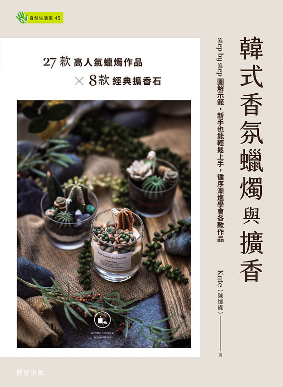 內容簡介 香氛蠟燭不僅有照明、紓壓、轉移情緒的作用,甚至成為居家擺飾、營造氛圍的好幫手,生活空間使用香氛蠟燭及擴香產品已成為許多人的喜好與樂趣。本書作者鉅細靡遺的傳授製作香氛蠟燭及擴香石的技法,並分享如何結合不凋花、乾燥花等不同素材創作出極富設計感的作品,只要跟著示範步驟操作,初學者在家也能做出極富時尚與優雅質感的作品喔!本書特色■詳述大豆蠟、蜂蠟、棕櫚蠟、蜂蠟片、硬脂酸、石蠟、凝膠蠟、微晶蠟等各種蠟材特性,分別示範如何運用上述蠟材製作27款精緻典雅蠟燭作品。■講解復古彩繪、破壞質感及浮雕質感等8款擴香石的所需工具材料、渲染上色技法與異材質結合技巧,讓您打造專屬自己的香氛小物。■講解色票應用、配色調色技巧,以及香氛精油種類特性、適用比例等知識。