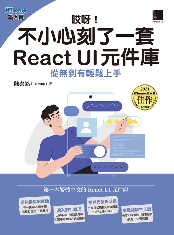 商品描述 | 哎呀!不小心刻了一套 React UI 元件庫 : 從無到有輕鬆上手(iThome鐵人賽系列書) (電子書):本書內容改編自【第13屆】2021iThome鐵人賽ModernWeb組佳作網路系列文章── |