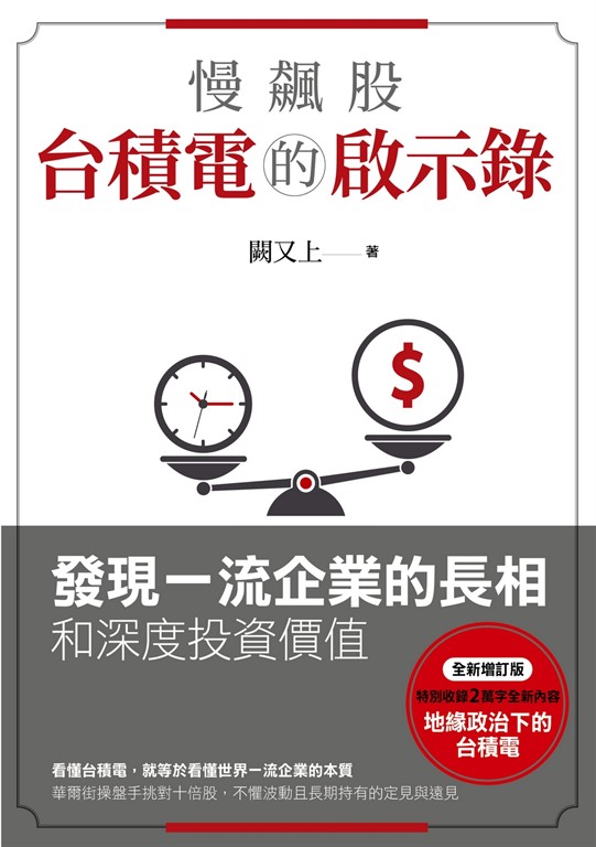 內容簡介 [全新增訂版]特別收錄〈地緣政治下的台積電〉看懂台積電,就等於看懂世界一流企業的本質華爾街操盤手挑對十倍股,不懼波動且長期持有的定見與遠見如果只懂得價格,卻不了解價值,買錯的損失,絕對比買貴大得多!當市場進入循環週期,地緣政治影響加劇, 台灣在半導體產業鏈的關鍵地位還穩固嗎?華爾街操盤手闕又上告訴你,經得起動盪的選股策略就是: ★ 以合理價、而非最低價買進世界一流企業,並且長期持有他把這類符合巴菲特、費雪投資金律的好公司,稱之為「慢飆股」。慢飆股的「慢」,在於遇到挑戰時可以沉潛、等待復甦,而不致於一敗塗地; 慢飆股的「飆」,是反映長年在經營管理體質上精研,所帶來的獲利成果。被封為護國神山的台積電,就是投資者不容錯過的慢飆股, 也是作者近三十年的資金管理生涯中第16檔十倍股。 自己的財富自己存,自己的台積自己買!作者在本書中將帶領讀者重新認識這家少數躋身世界一流之列,外資持股卻超過七成的台灣好企業,企盼帶動更多國內投資人跟著台積電的爆發力而獲益。 ★ 增訂版特別收錄2萬字〈地緣政治下的台積電〉全新內容綜合外資動向和台股資金面,作者認為即使身處美中爭霸戰與兩岸地緣政治的風暴中心,台積電未來五年依然以技術實力遠離風險、持續成長。這也是為何巴菲特、全球最大避險基金橋水聯合、老虎基金、哈佛校務基金將之列為重點持有的主因。本書以台積電為範本,深入探索一流企業需具備的量化財報數字及質化管理能力, 並強調長期持有的三大心法,擺脫在市場中追高殺低,最後被大戶割韭菜的宿命:➔ 以獲利率、本益比、成長動能判斷台積電〔價高而不貴〕➔ 用存股角度來看0050和台積電〔擁有而不交易〕的持股策略➔ 從財報數字和管理指標,找到〔越跌越買越心安〕的投資信念除了解讀台積電的深度投資價值以外,個人、企業或國家也可以跟著作者的視角在台積電篳路藍縷的成長過程之中,找到再出發、再成長的力量。