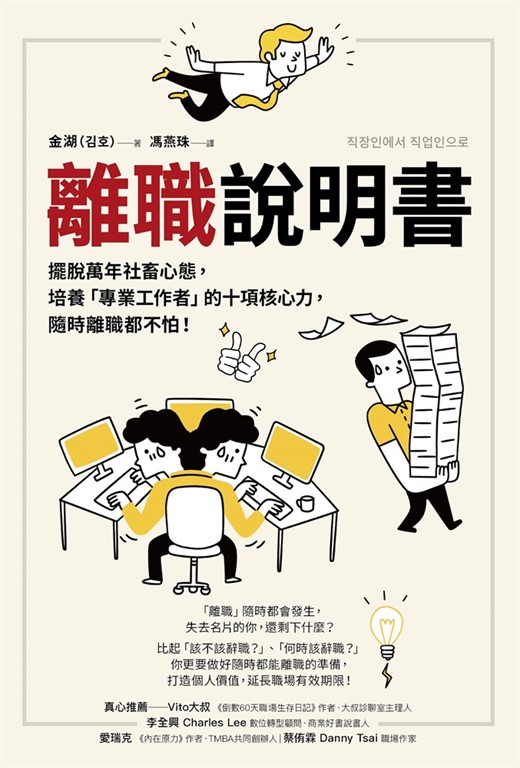 內容簡介 很多事,不是離職就會好,比起「該不該辭職」,你更要做好「隨時離職都可以」的準備!※ 離職前,請詳閱本說明書 ※★ 韓國三大網路書店Yes24、阿拉丁、教保文庫讀者9.7高分好評★ 韓國上班族一致力推,職場菜鳥、中年轉職、屆齡退休者都適用的職場說明書!▌所有上班族都應該要提前思考的事!每天都不想上班,卻不知道自己真正想要的是什麼、離職後又可以做什麼。雖然不喜歡上班,卻也擔心著有一天「被離職」,沒了名片,可以靠什麼養活自己?不管自願或非自願,「離職」是隨時都有可能發生的事。比起何時該辭職、該不該辭職,其實你要做好──隨時都可離職、離職後會更好的準備!▌不想成為萬年社畜,你需要建構「專業者能力」許多人以進大企業工作為人生目標、以成為「高階主管」為職涯最終發展,試圖在組織裡取得地位,努力了多年,職位也許提升了,卻不知為何而忙,逐漸變成毫無靈魂的工作機器人。本書作者職場經驗豐富,從跨國企業到一人公司、從上班族到CEO,提出一針見血的解方:唯有從「上班族」轉變成為「專業者」思維,才能做自己人生的主人,不再依賴組織與組織裡的角色,累積個人才能與專長,不管到哪裡都能發揮個人價值,延長職場的有效期限!▌打成個人品牌的職場說明書許多人把職場的成功當作人生目標,其實應該反過來思考:為了人生的成功,該如何活用職場,讓自己成為具競爭力的品牌。1、心態設定:職場不是世界的全部,在職場之外也要自我成長,這是奴才與人才的分別!2、目標設定:想要的工作成就是什麼?利用在職身分做好準備,改變時間和精力的分配。3、時間設定:十年後的你會在做什麼?回顧職涯發展,比對目前的位置,面對未來還需要多少努力。********************************日復一日的工作雖然令人煩悶,但「職場期限」終將有到期的一天。衝動離職只是一時爽快,並不代表從此海闊天空,有意識的做好準備,在那天來臨時才能優雅轉身,開心迎接另一個開始。本書獻給每天都想離職、想轉換跑道、不知道自己要什麼、思索人生下一站的上班族們!