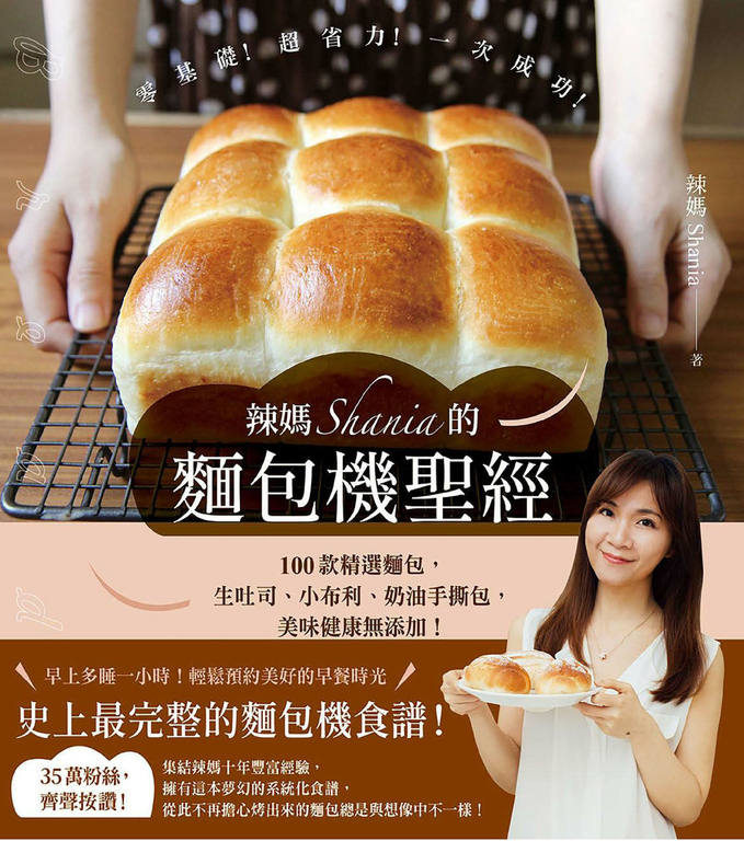 商品描述 | 辣媽Shania的麵包機聖經:100款精選麵包,生吐司、小布利、奶油手撕包,美味健康無添 (電子書):\早上多睡一小時!輕鬆預約美好的早餐時光∕史上最完整的麵包機食譜!①前 |