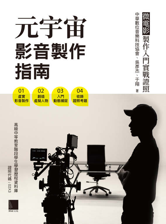 作者介紹 中華數位音樂科技協會協會宗旨:產業提昇、產業普及、音樂科技應用及跨界交流。成立沿革:本會有感於國內數位音樂未有統整性,進而成立此會協助統合國內數位音樂人才、錄音室相關行業、技專校院相關學系,形成數位音樂科技產業發展,並協助學校與產業接軌,提昇我國國際形象及專業國際化。其中,針對數位內容所需的聲音製作,包括數位化(版權)音樂創作、數位化音效創作、數位混音工程、數位錄音工程、MIDI編曲創作、PA現場錄放音工程技術及各式應用音樂軟體的科技發展技術的應用研究,以上內容為主要協助項目。吳彥杰動畫編劇、導演、製作人及影像教育者。作品涵蓋: 電視劇、動畫、微電影及廣告;成立共玩創作工作室專注定格動畫創作,作品入圍許多國內外獎項。推廣全人影像教育,培訓數百名種子講師,入選「天下文化教育基金會 - 未來教育台灣一百」、及「親子天下 - 教育創新100」。于翔 Frank烽燧視覺技術導演。曾任動畫軟體大廠特約講師,並參與Microsoft Xbox360《Kinectimals》、Playstation 3《Diggs Nightcrawler》以及《憤怒鳥變形金剛》等多款遊戲製作。2020年製作台灣第一支虛擬製作商業廣告專案《ROG Strix Flow X13 Series - Design Story》,並監製臺北時裝週及霹靂台灣台《阿宅跑起來》、三立新聞網《94要客訴》虛擬人即時展演。專長:3D 動畫、動作捕捉、虛擬人與虛擬製作專案之執行、技術統籌、課程規劃與教育訓練。