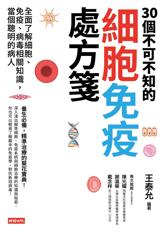 內容簡介 養生必備,精準治療的葵花寶典!深入淺出解答細胞、免疫系統與細胞治療的知識與秘密,你也可以輕易了解艱辛的免疫學,對抗新冠病毒!保持積極的人生觀及培養醫藥保健的知識,是現代人的必修課程,平常就該關心自己,做例行健檢。但醫病雙方往往資訊不對等,醫生有義務主動提供病患所需要的訊息,病患也要對自己的身體負責,充實醫療知識,當個聰明的病人。台灣開放細胞治療已超過四年,全力朝向產業化方向發展,而社會大眾一般只對幹細胞有模糊的概念,對免疫細胞並不了解。正逢近年來新冠疫情肆虐,此書透過人體免疫系統的解說,來介紹一般人所不了解的免疫細胞,使更清楚了解原來新冠病毒的防治和癌症免疫細胞治療,同樣源於免疫系統的運用。◎細胞與幹細胞之初識:介紹細胞及外泌體的基本概念,論述人體老化與細胞之關聯性,再進而就再生醫學的主角──幹細胞的相關議題作說明,深入介紹主要的幹細胞類型,及臍帶血幹細胞,最後再就當前產業發展的層面作論述。◎人體免疫系統之認識:說明免疫學的基本概念,尤其在當前全世界經歷新冠病毒疫情惶恐之後,提升免疫力已成為社會大眾關注焦點。◎免疫細胞治療的深入了解:免疫細胞是台灣目前醫界及生技產業的新興明星產業,其結合了細胞學及免疫學的最新科學知識之應用。◎免疫與病毒之相關醫療課題:對抗體及自體免疫疾病作補充說明,援用前面免疫學概念作基礎,對當前在新冠病毒的治療方案作論述。細胞治療是昂貴又充滿變數的治療方法,本書希望可以協助讀者對細胞治療之相關議題有廣泛的認識,給社會大眾更多的醫療思想啟發。本書把「再生醫療三法」上路及「疫情後」免疫養生、防治等時勢結合,提供給讀者預防保健的機會,是養生必備、闔家安康的最佳參考書。【專文推薦】陶聲洋防癌基金會董事長 陳光耀台灣社區醫學醫學會理事長 謝瀛華前三總細胞治療中心主任 戴念梓(按姓氏筆畫排列)