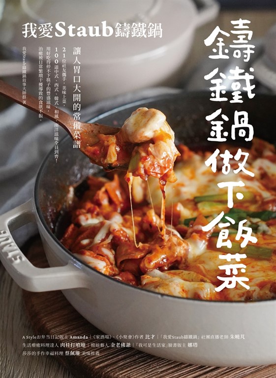 作者介紹 我愛Staub鑄鐵鍋 敘事大師群FB超人氣社團「我愛Staub鑄鐵鍋」成立3年,社員已超過8萬多人,是鑄鐵鍋愛好者集散地,透過社團的力量,讓社員可以互相交流,一同分享對鑄鐵鍋的熱愛。無論是購買鑄鐵鍋的最新資訊,使用各種鍋型的疑難雜症,精心料理的食譜照和生活大小事,大家像朋友一樣互相鼓勵、互相加油,讓生活更增趣味。敘事大師是經常分享精彩食譜,並獲得社友們大量迴響的社員。繼2021年社團出版第一本書,受到熱烈的迴響後,2022年再次推出新作。本書特別邀請21位敘事大師一起分享自己私房的「下飯菜」食譜。每一道都是作者們的自慢料理,誠摯的以美食與大家交流,期待更多好手成為下一批的敘事大師。▌敘事大師群Alice愛麗絲、Anny Chuang、Coco Chang、Cherie Wong、Eddi魏嘉昌、Erica Wu、Fendi姨婆、Jane莊鈞媛、Jessica潔西、Queena葵娜(李函紋)、方愛玲、江佳君、林雨澄、康韶玲 花奶、孫夢莒、張誦芬、甜媽鍾鋗、湯聖偉、馮英嵐、黃芬、謝宜澂(依首字筆畫排序)
