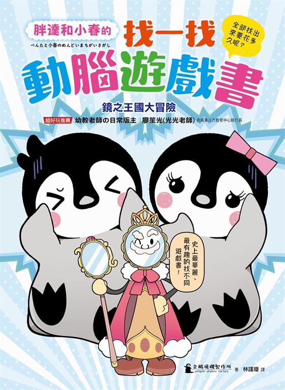 內容簡介 ╲前所未見的腦力激盪遊戲書╱和胖達小春一起大顯身手,逃出「鏡之王國」,總共高達1211個錯誤,你可以全部找出來嗎?讓孩子遠離手機電動、消除無聊,永遠玩不停!觀察力訓練‧意志力強化‧專注力提升越玩越聰明,從遊戲中培養全腦思維!★日本好評銷量突破10萬冊!最受孩子歡迎的超人氣角色「胖達和小春」這次要挑戰超難又有趣的找一找!喜歡惡作劇的「鏡子國王」這次出了個大難題,在胖達和小春的世界改變得錯誤百出!請聰明的你幫幫忙,找出所有不同的地方,就能幫助他們順利回到原本的世界。只要耐心找、仔細看,找出錯誤後,寫出藏在每個關卡的裡的提示球,和胖達小春一起大顯身手,逃出「鏡之王國」還能幫小春找到遺失的物品,解題能力再提升!越往前闖關,故事越有趣!但是錯誤也會越來越多,趕快來挑戰吧!★動物音樂家之村胖達與小春走到一個歡樂的小鎮,小鎮上的動物們都是超級厲害的音樂家,牠們一邊演奏好聽的樂曲,大家也一起快樂起舞,可是在聆聽音樂的同時,胖達和小春發現了小鎮裡的每個動物好像變得不太一樣,到底哪裡出了錯呢?★有點恐怖的妖怪屋糟糕!胖達與小春這次來到一間陰森森的妖怪屋,屋子裡的阿飄飛來飛去,嚇得胖達與小春冷汗直流呢!神祕的貓咪一直盯著我們瞧,害我們更緊張了,可是得找出全部錯誤才能回家,你能幫胖達與小春一起找出全部的錯誤嗎?★穿越時空回到恐龍時代不會吧!胖達與小春這次竟然回到遠古時代!暴龍、雷龍、三角龍……,這一次會不會被恐龍吃掉呀?我們得趕快找出鏡子世界裡的40個錯誤才行,不然胖達與小春就回不去了!★迷你小人的港邊小鎮 怎麼辦?奧利佛被許多迷你小人們團團圍住,牢牢綁在沙灘上了!胖達與小春該去解救他嗎?可是密密麻麻的小人讓大家都眼花撩亂啦!我們真的能找出鏡子世界裡的70個錯誤來嗎?看起來真是一項艱鉅的任務呢!結合繪本故事+視覺刺激+數學概念+圖形認知的專注力遊戲書,不管孩子獨玩或親子同樂都超級好玩! ▌燒腦指數:★★★★★★★★ ▌可愛指數:★★★★★★★★▌專心指數:★★★★★★★★比較概念:冰雪世界裡的月亮有哪兩種方向呢?森林裡的樹有變大或變小嗎?顏色認知:仔細找找看,蝴蝶的翅膀從什麼顏色變成什麼顏色了呢?找不同:尋寶船上的小鳥變成什麼動物了呢?沙灘上的帽子變成什麼水果呢?豐富詞彙:船上的小貓拿的是釣竿還是划漿呢?說說看龍宮裡的動物都在做什麼呢?╲超好玩推薦╱ 幼教老師の日常版主廖笙光(光光老師)奇威專注力教育中心執行長【適讀年齡】▲文字附注音▲5歲以上,國小生適讀。▲適合親子共讀,也適合孩子自己讀。