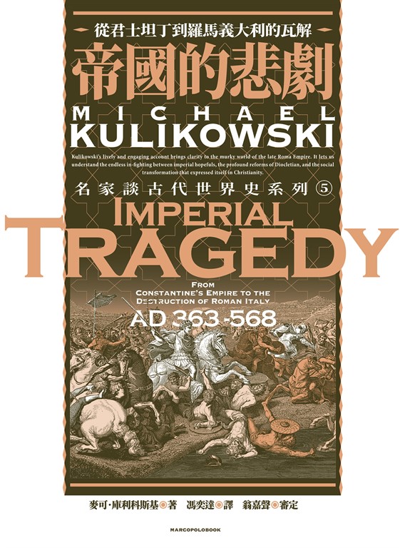 內容簡介 英國Profile Books出版社與哈佛大學聯手打造古代史新系列【名家談古代世界史】第五部登場!! 市面上最翔實、全面、以現代考古成果呈現的羅馬史最終章!詳盡回溯人類史上最強帝國的興衰始末。 ǁ成功大學歷史系教授翁嘉聲 審定.導讀ǁ 內外交攻、由盛轉衰的二百年,一本專書道盡帝國傾圮的遠因和近憂;從東日耳曼人攻破防線那刻起回推,這「西方的起源」已掏空幾十年;羅馬帝國的高樓塌了, 西方諸國如何傳承文明遺產,轉而各自興起?近1,500年後義大利半島全境統一,而「羅馬」遺留的輝煌遺產——只供後世人們在古城斷垣殘壁中,遙想往日的榮光 《帝國的悲劇》是馬可孛羅文化「名家談古代世界史系列」第五部巨作,內容主要講述從西元三六三年尤利安皇帝戰死於波斯(美索不達米亞),到五六八年倫巴底人從北方翻越阿爾卑斯山,入侵亞平寧半島,建立倫巴底大公國的兩百年歷史。承上一冊《帝國的勝利》所述,在「五賢帝」之後的幾個世紀以來,羅馬都是世界上最大的帝國之一,其影響力遍及歐洲、北非和中東地區,其軍事力量成功抵禦了帕提亞人(安息人)、日爾曼人、波斯人和哥德人的進攻。然後迎來最終不可避免的分裂:汪達爾人(東日耳曼人)對羅馬的洗劫,以及西方國家從帝國崩潰為——首先在名義上處於帝國統治之下的王國;然後一個接一個地超越帝國。《帝國的悲劇》講述了羅馬逐漸崩潰的故事,其中充滿了宮廷陰謀、宗教衝突和軍事歷史,以及社會、宗教和政治結構轉變的細節;本書追溯了兩百年的羅馬歷史,呈現出這段時間裡,儘管帝國的東方仍然保持著強大政治實力和文化活力,但帝國的西方卻變得無法統治並屈服於動盪和各種變遷,終至瓦解。本書對羅馬因外部入侵而衰落的觀點提出質疑。相反,它關注的是那些生活在帝國內部的人們,其選擇和條件如何導致了它的衰落。因為打破帝國的不是一個單一的災難性時刻,而是一個漸進的過程;當人們明白羅馬已經滅亡時,帝國西側早已打破了帝國的枷鎖:外溢的文明往原先蠻族之地四散,造就了日後多元並陳的西方文明。 Ø關於「名家談古代世界史」系列「名家談古代世界史」(History of the Ancient World Series)系列是由英國出版社Profile Books策劃,邀集英美兩地古代史專家,包括普林斯頓大學、杜倫大學、密西根大學、賓州大學等學校的一線歷史教授,統合西方學界近十年的研究成果,為非專業的一般讀者,書寫從西元前一○○○到西元五六八年,將近一千五百年的全面古代歷史。本系列的美版由哈佛大學旗下的Belknap Press負責出版。【國際史學家五顆星評價】★「一場對羅馬帝國晚期內部運作的歷史巡禮。庫利科斯基道出了一段生動、令人信服的故事,講述著人們為控制帝國的運作而戰,直到整個體系再也無法運作為止。」──凱爾.哈珀(Kyle Harper),《羅馬的命運》(The Fate of Rome)作者★「庫利科斯基將自己對羅馬晚期政局的通盤理解,結合非比尋常的眼光,尋找空間的、物質的細節,重建出帝國走上惡性循環,自我毀滅的過程。羅馬皇帝與蠻族國王,異教權貴與基督教主教,忠誠的士兵與自利的傭兵,在《帝國的悲劇》巧妙而戲劇性的故事中交織在一起。」──諾爾.倫斯基(Noel Lenski),《君士坦丁與城市》(Constantine and the Cities)作者★「麥可.庫利科斯基講述了羅馬帝國從四世紀到六世紀的故事。他以自信、流暢的文筆書寫帝國的政局,將最新的學術成果融入其中,卻又不至於陷入學界爭論的泥淖中。作為這段時期的政治史入門,我高度推薦這部作品。」──休.艾爾頓(Hugh Elton),《古代晚期的羅馬帝國》(The Roman Empire in Late Antiquity)作者★「故事令人入迷,讓人看見身為羅馬皇帝是什麼樣子:無止盡的宮廷政爭,外部事件的震撼,推動改革的必要,以及最重要的──不間斷的奮力保命,保住自己的寶座。」──傑利.透納(Jerry Toner),《古羅馬惡行錄 : 從殘暴的君王到暴民與戰爭,駭人的古羅馬犯罪史》(Infamy: The Crimes of Ancient Rome)作者