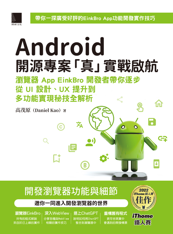 商品描述 | Android開源專案「真」實戰啟航 (電子書):瀏覽器AppEinkBro開發者帶你逐步從UI設計、UX提升到多功能實現秘技全解析(iThome鐵人賽系列書)完整解說EinkBro兩年多來的開發 |