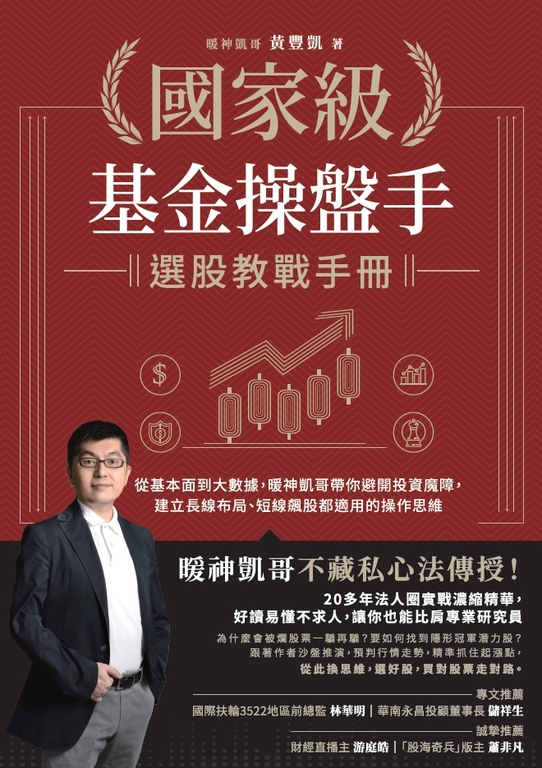 作者介紹 黃豐凱江湖人稱「暖神凱哥」,曾任投信基金經理人、上櫃公司發言人、基金公司研究部主管、政府委外四大基金代操經理人,目前為外資私募基金研究部副總經理。擁有二十多年豐富的法人圈資歷,掌握第一手股市訊息,並具扎實的科班訓練與經驗,曾經自掏腰包學習期貨操作,並融會貫通於台股上,擅長從「總體經濟」「大盤」「產業趨勢」「公司」等4大方向來找尋法人偏愛的飆股,精準抓住個股買賣點。卸下操盤手身分後萌生念想,看過太多人賠錢的例子,決心教大家正確的投資觀念,成為了今周學堂的王牌講師。他以均價、籌碼型態邏輯,開發XQ凱哥雷達、關鍵黃金K兩套軟體,應用在選股投資實戰,有助判斷個股股價轉折時間。本書將結合作者的親身經歷,搭配學堂熱門的實做技巧,幫助大眾跳脫基本面迷思,學習研究市場並更換思維選好股,輕鬆提高獲利。