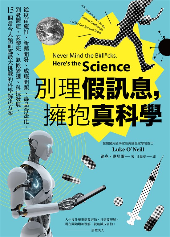 內容簡介 假訊息假新聞充斥,人人都該當個科學家:提出疑問,解決問題,把不了解的事情弄清楚。 從疫苗施打到成癮問題,從憂鬱症到安樂死等,知名免疫學家歐尼爾教授以輕鬆幽默的筆調和豐富的大眾語彙,為讀者闡明科學事實,指出一條明路,使複雜的問題變得容易解決。 ★愛爾蘭暢銷書排行榜冠軍★★愛爾蘭圖書獎「年度最受歡迎非文學類書籍」★ 「我們都對新冠肺炎疫情十分震驚,而且突然更加意識到科學知識對生活有多重要。我在這本書中藉由這種危害極大的病毒探討好幾個問題。我的目標是藉助科學知識,探討目前人類面臨的幾個重大議題背後的事實。這些議題包括掌控人生、施打疫苗、飲食法、心理健康、成癮問題、毒品合法化、種族主義、性別平權、工作意義、氣候變遷、安樂死和科技發展等,我覺得這些議題很有趣,希望也能吸引各位讀者。」──本書作者 路克‧歐尼爾 我們是否掌控自己的人生? 我們能否逃脫狗屁工作? 我們必須注射疫苗嗎? 男性和女性的大腦真的不同嗎? 我們會毀滅地球嗎? 在這本有趣又引人深思的書中,知名免疫學家路克‧歐尼爾教授探討生活中最重要的課題,為讀者介紹實用又有趣的科學知識。 本書涵蓋的主題五花八門,在在都是當今人類面臨的最大挑戰,包括:新冠疫情、施打疫苗、成癮問題、毒品合法化、飲食法、種族主義、性別平權、氣候變遷、安樂死、科技發展等。歐尼爾以一向幽默慧黠的筆調和豐富多元的文化史料,巧妙地解構科學,使複雜的問題變得容易解決。目前全球人類必須面對許多極具爭議性的問題,本書針對這些議題提出明確的科學答案,在這個假新聞和毫無助益的群體迷思充斥的世界,為讀者闡明科學事實,指出一條明路。 各界讚譽 ◆《愛爾蘭時報》 在混沌不清的主觀思想當道的時代頌揚科學事實。 ◆《愛爾蘭時代報》 歐尼爾把深奧的科學知識變得容易理解又親近。 ◆帕特‧肯尼(Pat Kenny)│愛爾蘭廣播公司主持人 本書含括不少大眾文化,從馬斯克、勞勃‧狄尼洛到格雷塔‧童貝里,擁有好書必須具備的所有特質:資訊、解釋和愉悅。非常棒的一本書。 ◆亞馬遜書店4.5顆星好評推薦! ◆在這本有趣又引人深思的書籍中,路克‧歐尼爾教授探討生活中最重要的課題,為讀者介紹實用又有趣的科學知識。 ◆書中探討主題五花八門,包括:新冠疫情、施打疫苗、成癮問題、毒品合法化、飲食法、種族主義、性別平權、氣候變遷、安樂死、科技發展等,為當今人類面臨最大挑戰提供科學解決方案。 ◆作者有感於世人都對新冠肺炎疫情十分震驚,而且突然更加意識到科學知識對生活有多重要。在本書中藉由這種危害極大的病毒延伸探討其他幾個重大問題。 ◆書中的每一章就是一個問題,作者以最新科學研究及實驗結果探討這些問題,闡明科學是如何協助我們在這些議題上做出正確判斷和決定,為讀者提供明確證據來支持最後提出的結論。希望在假訊息假新聞充斥的現下,人人都能像科學家:提出疑問,解決問題,把不了解的事情弄清楚。