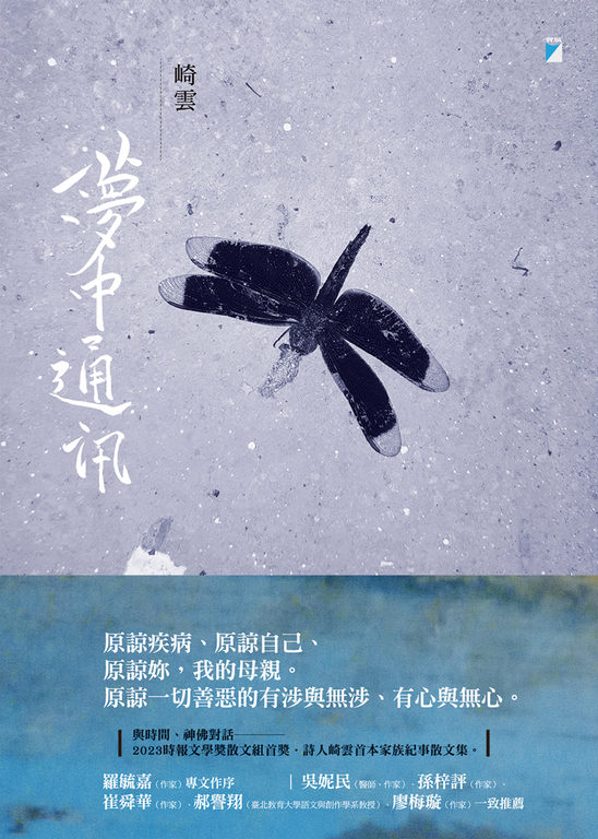 內容簡介 ▍2023年時報文學獎散文組首獎 ▍原諒疾病、原諒自己、原諒妳,我的母親。原諒一切善惡的有涉與無涉、有心與無心。▍與時間、神佛對話──▍2023年時報文學獎散文組首獎▍詩人崎雲首本家族紀事散文集生與死的間隔,慶祝與哀愐的間隔,虛幻與真實的間隔。諸此在敗壞中的敗壞,我鈍……母親蓮仔思覺失調症發病,時而暴怒憂傷,時而幻視幻聽、時空錯亂。當母親像小孩含著淚在親人懷中入睡,他想著,我也曾希望自己能夠這樣安然躺臥在母親的懷裡。一場地震後,他在倒塌的建築物前舉起錶,右耳聆聽時間,左耳聽苦難的人間,直到第七日,終於等到表姊一家四口的身影。父親為撐起家計積勞成疾,他捐肝給父親,讓自己沉默的一部分為父親提供守護。詩人崎雲以節制安靜的筆觸,書寫家族記憶與周身病事,其間有困惑眷念,亦有和解與頓悟。病苦死別之前,他不與神佛對峙,而與時間說話,任時間說話。※本書收錄時報文學獎、鍾肇政文學獎、吳濁流文學獎等多項文學獎獲獎作品。 原諒疾病、原諒自己、原諒妳,我的母親,原諒一切善惡的有涉與無涉、有心與無心。在彼刻,似乎疾病所帶來的痛楚已與我倆無關,與天地無關,與諸神無關,與業障冤孽與種種遁伏的妖鬼魔障無關。只覺得身心安然,當下的彼此乃彼此的護守,我們相互看顧著,而左手臂上的那一顆痣仍然清晰可見。──〈連心痣〉 ★ 收錄文章獲獎紀錄:〈蓮仔〉獲2023年第44屆旺旺時報文學獎首獎〈夢中通訊〉獲2022年鍾肇政文學獎散文副獎〈靜物之聲〉獲2022年吳濁流文學獎散文佳作〈遺事〉入圍2022年林榮三文學獎散文組決審〈水琴〉獲2020年第10屆全球華文文學星雲獎人間佛教散文佳作〈水問〉獲第2018年第8屆全球華文文學星雲獎人間佛教散文佳作〈連心痣〉獲2012年懷恩文學獎社會組優勝★作家齊聲推薦羅毓嘉(作家)__專文作序吳妮民(醫師、作家)孫梓評(作家)崔舜華(作家)郝譽翔(臺北教育大學語文與創作學系教授)廖梅璇(作家)__一致推薦「最好的詩人,他們的詩總是與他們散文裡頭的殘酷與慈悲互文,自剖,自成,自證。《夢中通訊》就是這樣一本,與詩集《諸天的眼淚》,必須一齊讀完的散文集。」──羅毓嘉「常人與眾仙不分,父身與子體借換,崎雲出入現實,寫出理性與感受間層層細密褶襞,以詩化的語言,貼近難以形容的生命情狀,將憂傷沐洗出清明輪廓。」──廖梅璇「崎雲以詩人精緻的意象,在生命、疾病、肉體間流轉思索,面對苦厄大難,展現了無比的溫柔與堅毅。他觀心、內省的文字,似木質之安靜,彷彿苔之深沉。」──吳妮民