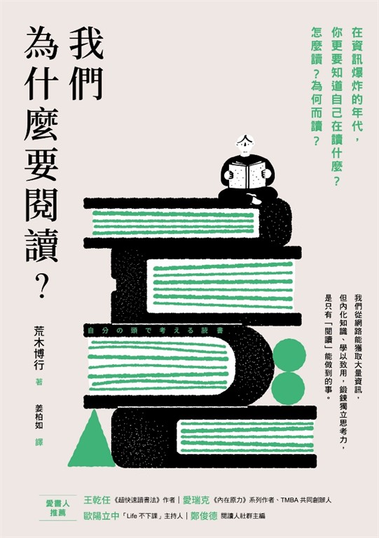 產品目錄 前言│與書本的相處之道序章│在快速變化的時代,閱讀的重要性我們在同一艘巨型油輪上追求將過去抽象化的能力裝幀師的悲劇AI無法模仿的「抽象力」抽象化不是煞有其事的心血來潮懶惰的抽象化會扼殺組織感謝生在「書本」存在的時代邁向「終身娛樂挑戰」的大門第1章│我們為什麼要讀書?書的最大魅力,就是毫無魅力引人入勝的思考餘地保持覺察,才能讀有所得不要突然施展「必殺技」讀者是賦予書本生命的人閱讀內容的同時,也不忘「閱讀情境」越是痛苦煎熬,越是最佳的閱讀時機跳脫思考框架,隨心所欲的閱讀第2章│如何挑選書? 針對「問題」的三種選書法從根本上撼動讀者的「發現問題之書」賦予不同看法的「發現答案之書」鞏固世界觀的「既知提醒之書」打造自己的閱讀書單與其讀萬卷書,不如發現一個「好問題」因應「人生階段」調整閱讀清單第3章│如何閱讀一本書? 改變「知識輸入」和「知識輸出」的順序替相異之人開通航線的能力抽象化能提升學習的層次提高問題的抽象度,開啟學習的大門克服閱讀的最後一哩路用「也就是說」和「打個比方」練習思考的往返力來回具體與抽象之間的「三角跳思考」第4章│你也有「閱讀病」嗎? 閱讀是沒有捷徑的堅持把書從頭到尾讀完的「完讀症」打造「集體圖書館」不允許自己見異思遷的「專一症」對買書不讀有罪惡感的「囤書症」囤書空間也是私人棲地流於武斷學習態度的「實用症」一成閱讀人都有的「沒時間症」第5章│閱讀有用嗎? 獲取資訊的閱讀vs.培養獲取資訊眼光的閱讀「閱讀有用嗎?」是毫無意義的問題重新肯定「不認真」雪花球閱讀理論死去的沉澱物vs.活著的沉澱物用適合自己的方法,將知識「銘刻於腦」用輕鬆的心態閱讀,才能將知識「冷藏封存」透過「產生連結」來攪拌腦袋第6章│閱讀就是活著 讀而不思則罔掌握「狂熱」和「疑惑」的理想平衡點控制問題的方向性疑惑會催生嶄新自我令人始終存疑的「消極感受力」越來越多人忘記懷抱疑問的重要性「平凡的邪惡」會讓人忘記懷疑質疑「存在」的價值結語│「用閱讀開拓新道路」的真正意義附錄│塑造自我的閱讀清單