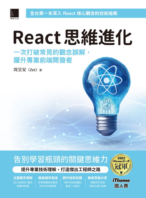 商品描述 | React 思維進化:一次打破常見的觀念誤解,躍升專業前端開發者(iThome鐵人賽系列書) (電子書):思想、脈絡與觀念理解是真正的專業技術門檻,也是鑑別出實力強大或平庸工 |
