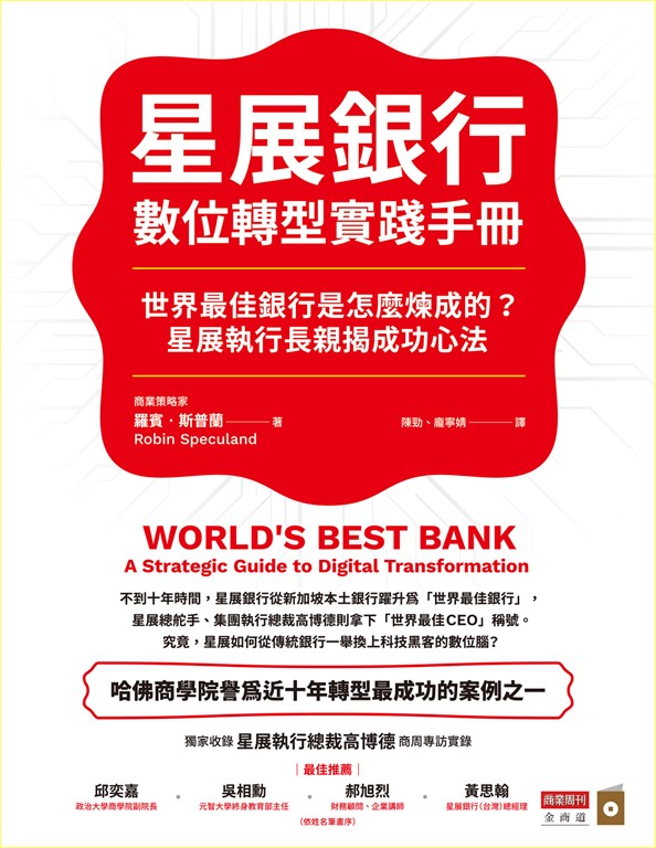 內容簡介 不做傳統銀行,把自己當科技公司十年躍升世界最佳銀行,星展執行長親揭成功心法★ 哈佛商學院譽為近年轉型最成功的案例之一★ 獨家收錄》星展執行總裁高博德 商周專訪實錄不到十年時間,星展銀行從新加坡本土銀行躍升為「世界最佳銀行」,成為第一家在12 個月內獲得三項「世界最佳銀行」殊榮的銀行,分別由《歐元雜誌》、《銀行家雜誌》和《環球金融雜誌》頒發。(這在銀行業,相當於一部電影獲得了三項奧斯卡獎——最佳電影、最佳導演和最佳男演員。)而星展總舵手、集團執行總裁高博德則入選了《哈佛商業評論》2019 年「全球CEO100」,這是《哈佛商業評論》每年評選的全球頂級CEO名單。轉型專家羅賓‧斯普蘭多年專訪、以第一手資料全面揭開星展集團數位轉型成功關鍵,呈現了星展銀行在企業文化、員工、技術、營運、業務乃至客戶等層面的變革歷程。本書將告訴你,技術開發只是基本,組織改造、制度、企業文化、領導力才是真功夫。在這段奇幻企業轉型之旅中,星展如何改變思維?如何執行?如何持續改變、進化?如何領導變革,一步步地帶領員工、客戶、股東──不做傳統銀行,把自己當科技公司。一場融合創新、挑戰、學習、變革領導的英雄之旅!•談創新:數位錢包、線上貸款、移工數位開戶,建構強大金融科技生態系統。•談學習:員工不分年齡,全面學習數位工具,開辦黑客松比賽。•談變革領導:雙重管理,讓技術及管理團隊同時掌握重點。•談客戶旅程:客戶至上,用4Ds思維打造完美使用體驗,讓銀行服務成為樂趣。三階段改頭換面,星展一躍成亞洲之星•進軍亞洲策略(2010-2014 年):成為新亞洲的首選亞洲銀行。 改進銀行的運作方式,趕上中國發展的浪潮,並在一定程度上為隨後的數位轉型戰略奠定基礎。•數位轉型策略(2015-2018 年):押注並抓住讓銀行業欣喜的數位化浪潮。這一戰略的成功是本書的主要關注點。•永續發展策略(2019 年- 未來):解決不平等、新的社會規範和地球的未來等問題,因為這些問題正在變得越來越重要。─本書特色─1. 星展總舵手現身說法:作者耗費多年,親自專訪星展集團執行總裁,第一手獨家資料大公開!2. 三大策略細節不遺漏:星展能華麗轉身,全靠總裁10年前三大策略布局,手把手教戰指南,全方位深入了解數位轉型實戰眉角。3. FinTech與典範經驗結合的最佳示範:星展將金融科技技術運用的出神入化,符合顧客、員工、社會大眾多方需求,是全球各家銀行的仿效導師。─最佳推薦─(依姓名筆畫序)邱奕嘉 政治大學商學院副院長吳相勳 元智大學終身教育部主任郝旭烈 財務顧問、企業講師黃思翰 星展銀行(台灣)總經理─各界讚譽─「本書作者羅賓‧斯普蘭具有豐富實戰經驗,除了自行創業外,也在世界知名大學授課,並擔任多家公司的顧問。他透過親身採訪與資料整理,揭露星展銀行轉型的內涵與特色。」──政治大學商學院副院長,邱奕嘉「本書詳盡記載了2015至2018年間,星展銀行實施數位轉型策略的種種細節,可說是一本數位化實務操作手冊。」──元智大學終身教育部主任,吳相勳 「我十分高興看到轉型專家羅賓.斯普蘭將星展銀行這一路上的變革過程和做法,鉅細靡遺且有系統地全盤整理。這本好書內容紮實、有策略、有步驟、有思維轉換,也有危機處理,堪為銀行業數位轉型的實踐指南,推薦所有關心數位轉型及金融科技(FinTech)的朋友們一看。」──星展銀行(台灣)總經理,黃思翰「世界各地許多領導者都在努力面對組織數位轉型帶來的挑戰。在羅賓的新書中,他分享了──星展銀行如何徹底改變組織中的每個部分,並展示了數位轉型中所需的不同活動如何結合在一起。我建議,任何參與數位轉型的領導者都可以閱讀這本書,不僅可以避免常見的錯誤,還可以應用在典範經驗上。」——哥倫比亞大學商學院副教授、暢銷書《Seeing Around Corners》作者,麗塔.麥格拉思(Rita McGrath)「我對人們的轉變如何鞏固數位變革的事十分感興趣。很高興看到羅賓將變革中用到的工具帶到生活中。這本書完美地呈現了超群領先的數位轉型背後的成功故事。」——思科(Cisco)EMEAR企業團隊教練,吉恩.麥克斯爾(Jean MacAskill)「這本書將指導領導者對組織數位轉型進行思考。雖然每一次轉型都是獨一無二的,但有共同的經驗教訓。羅賓成功地在字裡行間傳遞了星展銀行數位轉型成功的經驗。」——渣打銀行數位化解決方案總經理,林凱倫(Karen Lim)「策略實施和數位化專家羅賓.斯普蘭將世界最佳銀行星展銀行的數位轉型驚人之旅帶到了現實生活中。羅賓的敘述引人入勝,這與許多組織今天面臨的挑戰完全相關。對於那些正在轉型的企業來說,這本書就像一本實用的操作手冊。事實上,這是我讀過的第一本解釋如何利用數位化實現企業轉型的書。這是一本獨特、優秀的作品,是商業領袖的必讀書目。」——《The Inner CEO》作者,傑瑞米‧布萊恩(Jeremy Blain)