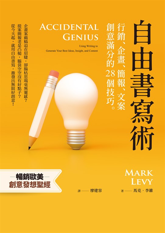 內容簡介 企畫案截稿迫在眉睫,卻腸枯思竭毫無靈感?提案簡報老是凸槌,腦袋空空沒有好點子?從今天起,就用自由書寫,激發出無限好創意! 每個人都會遇上腦袋打結的時候!當你必須完成報告、提交企畫、發想文案卻思緒不斷撞牆,難道只能眼睜睜看著光明前途被自己的死腦袋給耽誤了? 當邏輯思考無法幫你解決問題時,「自由書寫」就是啟動腦袋轉個彎的好方法──針對主題,以最快的速度不停書寫,不管文法或用字是否正確。一旦腦袋來不及編修你寫出來的東西,你便能專注於問題,運用身體的機械性動作超越大腦的反應,讓大腦發揮更大效用。 自由書寫是一種快速的紙上思考模式,讓你得到平常難以達到的思考成果。這個技巧可以幫助你深入了解自己、看見可能的機會與選擇、解決問題、激發創意,以及做出決定。它有助於提升創作品質,不論是內容或寫作風格。 本書作者馬克.李維指出,創造力不是一種天賦,而是一種練習,只要你能善用原本已在腦中的東西,就能將思緒的原料變成實用的工具。他以工作上遇到的難題為實例,包括策略、行銷、定位、業務、商業書寫等方面的問題,示範各種進行自由書寫的方式。不論你是遇到寫作瓶頸、面臨截稿壓力,或是不知如何處理腦中雜亂的想法,本書都能幫助你提升戰力,將想法化為文字,發揮源源不絕的創意! 自由書寫的28個技巧: 1. 輕鬆試2. 不停地快寫3. 設下時限4. 以思考的方式進行書寫5. 跟著腦袋裡的想法走6. 轉移注意焦點7. 將思緒化為文字8. 運用引導句9. 詞彙解析10. 放下自己的聰明才智11. 抽離的價值12. 突破既有的假設與概念13. 一百個點子比一個點子更容易取得14. 學習愛上說謊15. 進行紙上對話16. 將問題付諸紙上作業17. 書寫馬拉松18. 自我質疑19. 據實書寫的魔力20. 從商管書中擷取精華21. 你專注什麼就成為什麼22. 與他人分享未臻成熟的想法23. 幫助他人發揮思考能力24. 隨時留心身邊發生的故事25. 建立點子資料庫26. 為自己量身打造一套原則27. 從自己著迷的事物著手28. 自由書寫直到作品完成◎我一直是本書與馬克.李維的忠實粉絲,不運用書中的方法,我已經沒有辦法工作了。──David Meerman Scott,《新行銷聖經》(The New Rules of Marketing & PR)作者◎不論你是遇到寫作瓶頸、面臨截稿壓力,或是不知該如何處理腦中亂竄的點子,馬克.李維都可以為你提供解答。只要遵從本書的原則,文字就會自然而然傾瀉而出,讓你順利完成工作,達成目標。快買這本書,釋放你腦中的所有點子!──Joseph Pine II,《體驗經濟時代》(The Experience Economy)共同作者◎馬克.李維是為作家與企管大師解決疑難雜症的良醫。他教導的技巧,可以幫助我們釋放滿腦子的創意,讓點子、解決方案及文字如洪水般洩流而下,精采、出人意表且確實可行。我愛死這本書了。──Debbie Weil,企業社交媒體顧問◎馬克.李維教導讀者自由書寫這個很棒的技巧。它可以幫助你進入意識的深處,挖掘珍貴的寶藏。假如你想要開發自己的潛能,絕對不可錯過本書。──B. J. Bueno,顧問公司The Cult Branding Company創辨人◎許多書志在幫助讀者解開錯綜複雜的思緒,將想法轉化為力量強大且深具意義的工具,而本書是其中的佼佼者。我會向我所有的客戶推薦本書。──Jerry Colonna,創投公司Flatiron Partners創辨人兼執行長◎馬克為那些想要成為創意天才的人,創作出一本實用可行、互動性強且充滿啟發性的指導手冊。本書是行銷與創意發想者的無價之寶,激發出無限的新點子與充滿震撼的內容。──Nettie Hartsock,顧問公司The Hartsock Agency創辨人◎這本書可以改變你的一生!馬克提出的觀念可以為事業、寫作,以及任何你想做的事,開啟靈感的大門。──Lois Kelly,美國知名部落格Dying to Help作者