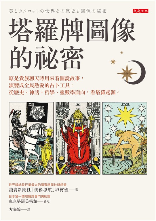 內容簡介 ◎塔羅牌與撲克牌,哪個早?最早數字牌出自中國,經波斯傳入歐洲變成塔羅牌。 ◎天主教歷史中沒有女教皇,塔羅牌中的女教皇圖像是以誰為藍本? ◎塔羅是藝術,最古老版本之一,就是由大英博物館圖書館員負責監修。 塔羅,是占卜工具?卡牌遊戲?還是古代神祕主義的象徵? 起源可追溯到十五世紀中葉時期的義大利, 這些「畫著圖案的卡牌」,原本是貴族們閒暇時看圖說故事的娛樂, 直到十八至十九世紀,被法國占卜師引入,與歐洲盛行的神祕主義產生連結。 塔羅牌共有78張,由22張大阿爾克納牌,與56張小阿爾克納牌組成。 22張大阿爾克納源自22個希伯來文字,繪有愚者、戀人、皇后等主題圖卡, 小阿爾克納類似撲克牌,有權杖、金幣、寶劍、聖杯等四種符號(花色)。 大牌用來指出大範圍的命題或趨勢;小牌可從花色剖析細節。 本書作者為日本讀賣新聞社「美術導航」取材班, 內容集結自人氣專欄文章「愚者之旅The Art of Tarot」。 由日本第一間塔羅專門美術館東京塔羅美術館審定, 從歷史、神話、哲學、靈數學等不同面向,看塔羅的起源故事。 ◎每個圖像背後都是一個歷史 塔羅圖像的來源十分複雜,有聖經故事、希臘羅馬神話, 還有亞里斯多德與畢德哥拉斯等古代智者流傳下了的智慧。 義大利米蘭有一幅1440年代所繪製的溼壁畫〈玩塔羅牌的人們〉, 能看到當時貴族們熱衷於玩卡牌(塔羅牌)遊戲的景象, 他們藉此遊戲傳達知識、傳承信仰、倫理,還能防止詛咒誕生。 ◎圖案的由來與象徵 ‧「塔牌」,就是巴別塔的故事 神為了懲罰人類想建通天塔的傲慢,決定打亂人類語言,讓彼此再也無法溝通, 這個故事實在太有名,所以,塔牌上的塔經常被認為是巴別塔。 各版本的圖像都是塔頂被破壞,看似很不吉利, 但翻到「塔牌」一定是壞事嗎?想想巴別塔故事的結尾。 ‧倒吊人牌,就是耶穌受難圖 人為什麼倒吊?因為做壞事被懲罰? 細看倒吊人牌會發現,他們表情平靜,不像受罰,更像出於己意的修行, 讓人聯想到基督教常出現的畫作〈耶穌受難圖〉:犧牲自我成就所有人。 ‧教皇牌與惡魔牌,先人對權力與慾望的示警 教皇代表神聖與正面,惡魔代表失衡與壓力,意義看似相反 但細看圖案,教皇腳邊有兩把鑰匙,惡魔旁的兩名奴隸則被銬上鎖鏈, 這個故事是在對人類示警:絕對的權力可以成聖,也會成魔, 位居聖職頂點的教皇,只要禁不住慾望的陷阱,隨時可能變惡魔。 原是貴族們為聊天助興的看圖說故事,演變成普羅大眾熱愛的占卜工具。 從歷史、神話、哲學、靈數學等面向,看塔羅起源。