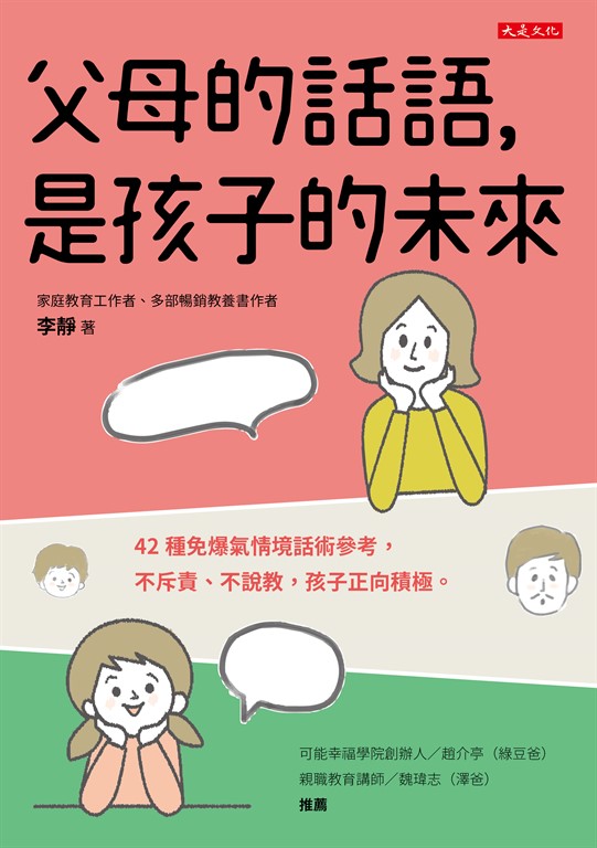 內容簡介 毀掉孩子一生的殺手,不是遊戲,不是貪玩,而是父母的語言暴力。 ——犯罪心理學專家、教育心理學專家/李玫瑾 「這也不會,那也不會,乾脆書別念了。」 「功課多?就你功課多,別人就不多嗎?」 「你啞巴嗎?看到人不會叫啊!」 「起床了,再不起來我就拿棍子揍人了。」 想表達關心,卻成了孩子最不想聽的說教; 引導孩子改正不良習慣,一開口卻變成了斥責...... 家長的粗暴言語非但影響不了結果,反而激發孩子叛逆的情緒。 作者李靜致力於孩子品格和健康教育研究多年, 她說:有些家長會以貼負面標籤、講反話的方式來激發孩子的上進心。 但在孩子心中,父母說的話就是事實,他們常常會不自覺對號入座, 久而久之,你的話語,就成為她們的未來。 ‧家有「起床困難戶」 × 「起床了,再不起來我就拿棍子揍人了。」 ○「起床囉!早餐有你最喜歡吃的蛋餅哦!」 催促、嘮叨的言語,會讓氣氛變緊張。 改用幽默、平和的話語,可以緩和孩子的焦慮感,不易煩躁。 ‧孩子被老師「告狀」 × 「你看看你考的分數,能看嗎?」 ○「成績退步了!你一定很難過,有想過這次考壞的理由嗎?」 成績退步,孩子自己才是最難過的。 再說一些傷及孩子自尊的話,他可能更討厭上學。 你應先表達同理心,並引導孩子調整學習方法和對策。 ‧什麼,我的小孩竟偷錢 × 「小小年紀不學好!學偷錢?」 ○「你為什麼要私下拿?零用錢不夠,還是遇到什麼事?想跟媽媽聊聊嗎?」 孩子未經允許拿別人的東西,固然不對, 但家長若不給孩子解釋的機會,強行貼上「偷」的標籤, 會給孩子心理健康造成傷害。唯有找出動機,才能對症下藥。 ‧不願主動打招呼 × 「都多大了,還不會主動跟人打招呼啊?」 ○「今天來家裡的長輩你可能不太熟,來,媽媽介紹你跟他們認識。」 孩子不願主動打招呼,可能只是不知道怎麼稱呼對方。 父母要主動了解原因,再協助孩子意識到禮貌的重要性。 一句話,可讓孩子決定一生的夢想,也可使他們否定自己, 42種免爆氣情境話術參考,不斥責、不說教,孩子正向積極。