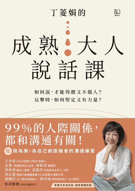 內容簡介 99%的人際關係,都和溝通有關!職場、家庭、談判、衝突,化險為夷,為自己創造機會的38個溝通練習──公關教母丁菱娟的說話課,陪你一起好好說話──一句話可以打破僵局,也可能讓關係降至冰點!當你能換位思考,說進別人心坎裡時,就能減少偏見、增進人脈,讓生活、工作都順遂。你是否曾因說錯話而懊惱?或是因溝通不良,導致錯過好機會?事實上,我們說出口的每一句話都會影響結果。這些情形你是否也曾發生過呢?• 習慣長篇大論,說話沒有重點• 覺得直爽是優點,什麼話都說• 談判時常照單全收,不擅拒絕• 在社交場合中,很難破冰及開啟對話• 衝突、危機來臨時,不知該如何應對對丁菱娟來說也是,她初入職場時,是一位傻乎乎不太懂人情世故的人,也經常不知如何接話,或是說錯話讓場面尷尬。縱使到現在,她自認還是離妙語如珠很遠,但一點都不影響溝通的真諦。▍溝通的本質在於傳遞訊息,促進理解和交流,達成人際關係的和諧。從事公關工作三十多年來,丁菱娟處理過許多危機事件,也看過不少職場狀況,她發現大多數的問題都和溝通有關,因此,她整理了這些年來在公關、職場及社交等不同場合中的經驗,濃縮成38個臨場說話練習,包括:•廢話少說,不該說的就別說話少不見得沒有力量,有時沉默反而能激發強大的張力,令對方感到有壓力。•說話犀利固然厲害,但留點溫暖更迷人好話、讚美要大聲說,若是別人的痛,則在私底下給予溫暖。•時間就是金錢,職場溝通最忌繞圈子縮短溝通的時間,其實就是幫助企業節省成本並提高競爭力。•如何說才能讓老闆釋出資源,幫你解決問題?向主管求援也要有技巧,記得,永遠帶著你思考過的解決方案,而不是把問題丟給主管處理。•危機發生時,如何真誠道歉?道歉時,要「往鞭打自己比別人預期的更多」來出發,才能讓別人感受到你的誠意。願你我都能做個成熟大人,好好說話。國內名家一致推薦王介安│GAS口語魅力培訓®創辦人瓦基|「閱讀前哨站」站長林依柔|聲語師洪仲清│臨床心理師夏韻芬∣財經節目主持人、作家唐心慧∣電通行銷傳播集團大北亞區暨台灣執行長張國洋|大人學共同創辦人葉丙成∣無界塾創辦人、台大教授──好評推薦(依姓氏筆劃排列)好評推薦從一個公關人的角度,柔軟且細緻地分享說話對人生的影響,家庭的、情感的、職場的……。真實的觀察、真誠的體會,全部記錄在這本讓我們心靈提升的作品中。推!──王介安,GAS口語魅力培訓®創辦人丁菱娟以她豐富的創業實戰經驗,編撰出《丁菱娟的成熟大人說話課》。不僅是一本溝通指南,更能讓你在言談間展現成熟大人的風采,處事得體,勇敢面對各種挑戰。一本改變溝通風格的必讀之作!──林依柔,聲語師如作者的期待,這是一本含蓋職場溝通、人際溝通、危機溝通、向上溝通以及對年輕世代以及長輩溝通的全方位說話課,希望大家在書中找到可以應對以及學習的好方法。──夏韻芬,財經節目主持人、作家真心推薦全台灣為說話所苦的朋友們,來閱讀丁老師這本好書。有了這本武功秘笈,說話將不再是你的苦處,你會更有信心,把話說好!──葉丙成,無界塾創辦人、台大教授