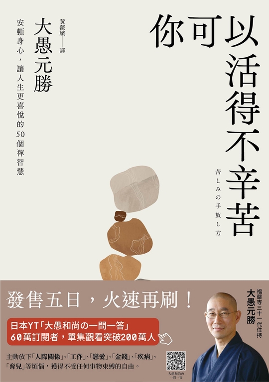 商品描述 | 你可以活得不辛苦:安頓身心,讓人生更喜悅的50個禪智慧 (電子書):【發售五日,火速再刷!】日本超人氣網紅和尚,台灣首度出版!YT「大愚和尚的一問一答」追蹤者突破60萬 |