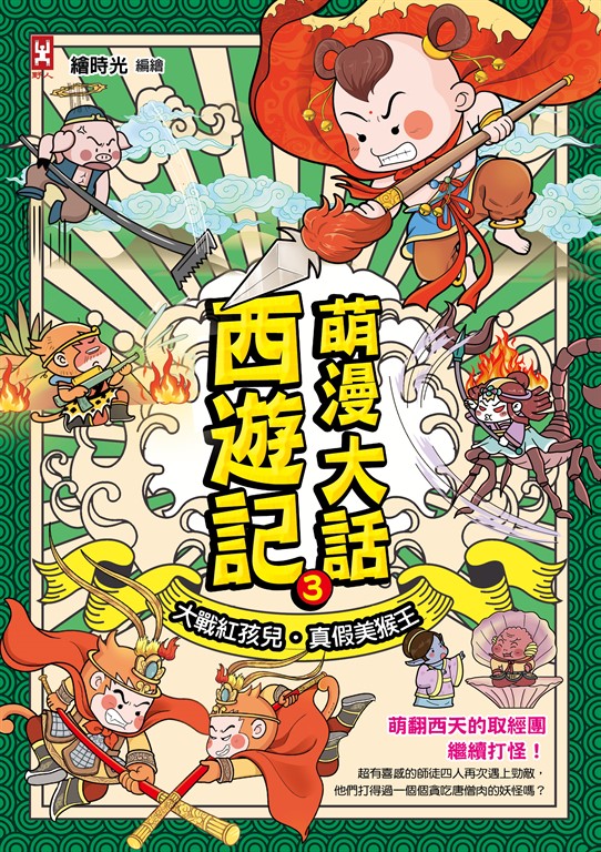 內容簡介 ★不用家長陪,孩子就能讀!★★萌趣漫畫,再現西遊取經全貌!★★西遊小百科,拓展國學知識!★★西遊小辭典+小成語,累積語文學習素材!★讀西遊萌漫,也能學知識!萌翻西天的取經團繼續打怪!超有喜感的師徒四人再次遇上勁敵,他們打得過一個個貪吃唐僧肉的妖怪嗎? ◆誰家的熊孩子?妖界最頑皮的紅孩兒大鬧師徒四人,究竟何方神聖才能鎮住屁孩之王? ◆妖界最跩8+9!因為是海龍王的親戚,就可以為所欲為?翻浪花、打悟空、綁唐僧,真是 I 服了YOU…… ◆仙界小動物,全員逃走中?!觀音菩薩養的金魚、太上老君的青牛怪等等,各位神仙同事,我老孫難道是開寵物旅館的嗎? ◆美女如雲的女兒國,懷孕的卻是豬八戒?子母河的水不能亂喝,話也不要亂說,不然就會被女王綁回去成親囉!(女王,我不想努力了……) ◆怎麼會有兩個孫悟空?哪裡冒出來的山寨猴,我可是唯一齊天大聖,行不改名、坐不改姓,師父也只會愛我這隻猴子!(咬手帕) 【讀西遊萌漫,也能學知識!】 本系列收錄「西遊小百科」、「西遊小辭典」、「西遊小成語」等知識單元, 享受趣味漫畫之餘,也能輕鬆學習國語文知識! 【閱讀關鍵與特色】 ✎適讀年齡:無注音(僅難字標示注音),適合9歲以上閱讀。 ✎學習領域:文學選讀、語文表達、專題閱讀與研究、國學常識 ✎核心素養:人際關係與團隊合作、系統思考與解決問題、身心素質與自我精進