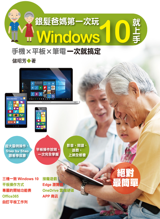內容簡介 本書是針對銀髮爸媽們的數位生活操作做為首要需求,透過簡單易懂的文字敘述搭配圖面,讓第一次接觸Windows的銀髮爸媽們能夠輕鬆入門,體驗數位新生活。《認識Windows 10與操作方式》以微軟最新的Windows 10介面做為環境說明,平板、手機、筆電一次搞定。《軟體應用與實用APP》簡單基本文書軟體介紹,再加上APP下載操作示範,軟體操作一定没問題。《內鍵遊戲、附屬應用程式介紹》詳細的內鍵遊戲、程式介紹,把你的作業環境搭配生活雜事,讓應用最大化。《最新瀏覽器與雲端生活》微軟最新Edge瀏覽器介紹,以及OneDrive雲端空間的活用,到哪裡都零距離。