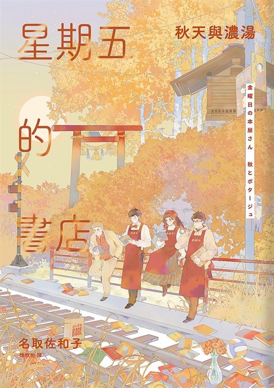 內容簡介 夢想幻滅,也許是新生的開始。互相傷害的家人、心意不通的朋友、並肩作戰的宿敵,請不要放棄「閱讀」彼此的心!帶著涼意的秋天,一絲溫度都讓人眷戀。來去匆匆的車站裡,書店「金曜堂」暖心駐守,今天也等待著人們,一起度過心靈的轉捩點……★日本亞馬遜書店4.5星,系列好評擴散中★閱讀網站「讀書METER」超過1300人關注,逾400則書評◎插畫書封概念──台灣插畫家左萱以溫柔的筆觸,將四位主角及每個故事的「象徵物品」,完美染上「秋天」的氣息。【作者的話】與書本相遇的方式有很多種,可能在與他人的交流中得知,也可能在感覺孤單時遇見,不過讀過的每一本書全都成為我的養分。不管說幾次「謝謝」都不足以表達我內心的感激,我就是懷抱著這種心情寫下「金曜堂」的故事。──名取佐和子【故事介紹】如果人與人之間的關係,能藉由品味同一本書而昇華,為你和重要的「那個人」重繫連結的,會是哪一本書呢?小小的車站書店「金曜堂」,卻擁有廢棄月台改造的龐大地下書庫,傳聞一定能在這裡找到「想看」的書。然而,豐富的藏書並不是祕密,熱情純真的店長槇乃、寡言細心的店員栖川、豪爽率直的老闆靖幸,以及春天剛加入、原本害怕閱讀的工讀生史彌,四人默契十足,才能為顧客找到命中注定的那本書。送走了夏天,大學即將舉行學園祭,排球同好會的主將找上史彌,希望能到「金曜堂」見習書店咖啡廳的工作。約定的當日,主將帶來一名同伴——社團的王牌選手,兩人勢如水火,但又似乎很在意對方,究竟是怎麼回事?微涼的秋天彷彿喚起了人心對溫暖情感的渴望,「金曜堂」見證這段特別的友誼後,沒有「服務券」就無法與母親往來的兒子、離婚後遭女兒拒絕見面的父親,接連到來。甚至槇乃與史彌到東京參加書展活動,偶遇長年為史彌父親工作的「知海書房」店長,她也意外吐露埋藏心底的一樁因緣……透過「金曜堂」邂逅的書,宛如一張車票,乘客紛紛踏上屬於自己的旅程,途中會與誰一起交織出何種故事?最後,迷惘的他們能在嚮往的目的地下車嗎?有個人知曉/太宰治《無人知曉》為了迎接學園祭,排球同好會向「金曜堂」提出請求,希望能實地學習書店咖啡店的布置與菜單設計。上門的兩位社員性格相反,一人熱情執著、一人自由隨興,談起排球更是氣氛降到冰點,兩人之間到底發生什麼事?書店之森/村上春樹《挪威的森林》史彌和槙乃代表「金曜堂」,參加東京的書展活動。史彌父親創立的「知海書房」,由總店的二茅店長出席座談會。槙乃舉手發問:「在地小書店會不會帶給大型書店良好的刺激及協助呢?」二茅店長不痛不癢地保守回答。然而活動結束,她卻向兩人表示「有事想聊聊」……自己的歲月/茨木則子《歲月》《自己的感受力》為「金曜堂」豐富的書種折服、成為常客的太宰士,是個熱中閱讀輕小說的阿宅。自從兩年前,母親再婚的對象去世後,他每年都不情不願地回老家幫母親採收芋頭。一天,阿靖通知太宰,他母親摔傷被送往醫院,可是他怎麼也邁不出腳去探病……甲斐先生/藤野惠美《阿香》外表像是登山客、跟書店氛圍格格不入的甲斐先生,今晚將久違地與女兒未都見面。小時候,未都與爸爸經常開小小的讀書會,但隨著歲月流逝,她逐漸疏遠了爸爸。尷尬的父女相會中,史彌在書架一角發現未都的升學意願調查表……【各方心動推薦】邱慕泥|戀風草青少年書房店長黃淑貞|小兔子書坊店主羅怡君|親職溝通作家與講師顏銘新|小茉莉親子共讀【在閱讀歷程中持續勾勒美好的未來】黃淑貞閱讀總能讓我們窺探他人的生命舞台,有時可以成為自己心靈的防空洞,暫時得以喘息;有時閱讀是一種映照與提醒,映照自己生命困境,提醒自己無論如何都得保有希望。《星期五的書店》系列透過書籍與對話的輕盈節奏,演奏著平凡讀者與書籍相遇的美麗樂章,細膩描繪讀者與書店邂逅,得以修復內心的脆弱,寬慰內在的疲憊,並且在閱讀歷程中持續勾勒美好的未來,微笑面對每一個明天。【每一次的閱讀,都是一次祈禱】顏銘新自以為是愛書人的信心和驕傲,在閱讀《星期五的書店》第三集時被一再打擊,卻又不甘心地追逐著文字和情節,心情時而亢奮時而鬱悶的悲喜折返跑。最後被「編撰故事很像是在祈禱」這一句話救贖。懂了,每一次的閱讀,都是一次祈禱。