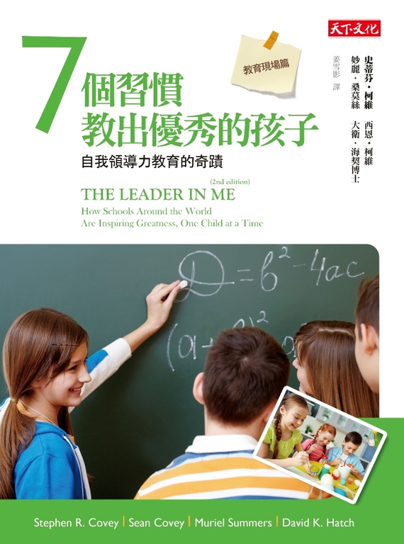 作者介紹 史蒂芬‧柯維 Stephen R. Covey 備受全球尊重的領導力權威、顧問、老師,曾獲選為《時代》雜誌「全美二十五位最有影響力人物」之一。他也是許多知名著作的作者,包括全球暢銷書《與成功有約》,被選為二十世紀最有影響力的書籍第一名,以三十八種語言在全球銷售兩千五百萬本。柯維博士其他的暢銷書還包括:《第8個習慣》、《與時間有約》、《與領導有約》、《與幸福有約》、《第3選擇》(以上均由天下文化出版)、《人品》(Everyday Greatness)。柯維博士也是富蘭克林柯維公司的共同創辦人及副董事長。他在《7個習慣教出優秀的孩子》第二版編撰的過程中去世。我們深深懷念他,但他的遺澤常與我們同在。西恩‧柯維 Sean Covey 富蘭克林柯維公司的執行副總,專責教育部門。史蒂芬‧柯維之子,畢業於楊百翰大學、哈佛大學企管碩士。他致力於將領導力原則及技能帶給全球的學生、教育工作者、學校,以期帶動全球的教育變革。他是《紐約時報》的暢銷書作者,著作包括:《與未來有約》、《與成功有約兒童繪本版》,以及被譯成二十種語言、全球銷售逾四百萬冊的《7個習慣決定未來》。妙麗‧桑莫絲 Muriel Summers 1998年以來一直擔任北卡羅來納州洛利市寇姆斯小學的校長。畢業於北卡羅來納州立大學教堂山分校,同時擁有北卡大學夏洛特分校教育碩士學位、馬里蘭大學學校行政碩士學位,以及加州大學的榮譽博士學位。桑莫絲校長的遠見創造出了全美第一所領導力學校。在她的領導下,寇姆斯小學獲獎無數,包括:「全美藍帶學校獎」、「國家品格學校獎」、「全美磁性學校獎」、「美國聯邦法案傑出學校獎」、「全美年度最佳小學獎」,並為富蘭克林柯維公司教育部門認證的第一所「燈塔學校」。大衛‧海契 David Hatch 富蘭克林柯維公司教育部門「策略發展計畫」全球總監。顧問經驗遍及全球三十五個國家。他的個人及組織領導力評量受到全球數百萬領導人使用。史蒂芬.柯維博士《人品》一書的共同作者,《7個習慣教出優秀的孩子》第一版及第二版的研究團隊負責人。海契博士在企業界、政府及教育界擁有深厚的顧問經驗,過去十年則致力於開發、運用領導力工具於學校及個人的變革。譯者簡介姜雪影 現任沛德國際教育機構資深顧問,並為公視、華視、中央通訊社董事。