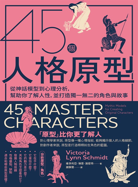 作者介紹 作者簡介維多利亞•琳恩•施密特 Victoria Lynn Schmidt國際公認角色原型研究專家。加州大學洛杉磯分校(UCLA)電影課程畢業,獲加州羅耀拉瑪麗蒙特大學(Loyola Marymount university)寫作碩士學位,也是一位心理學博士,著有《進階寫作技巧》(Advanced Writing Techniques: Secrets)、《一月一書》(Book in a Month)、《故事結構設計師》(Structure Architect)等。寫作之餘,她也在好幾所大學開設課程,傳授她的寫作相關研究與技巧,有不少學生成為暢銷作家並榮獲文藝獎項。和大多數寫作書不同的是,她的著作都奠基在紮實的研究工作上。譯者謝靜雯專職譯者,荷蘭葛洛寧恩大學英語語言與文化碩士,小說譯作有《失物之書》、《好預兆》、《夜行馬戲團》、《失落的秘密手稿》、《綠島》等,以及漫遊者文化出版《莎士比亞故事集:莎翁四百周年紀念版》、《安徒生經典故事集:百年復古插畫新譯精裝愛藏版》、《祕密花園:百年紀念愛藏版》。