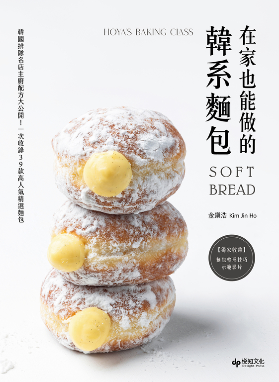 內容簡介 \100%韓式烘焙專書,初登場!/★韓國熱賣,一上市即火速再刷!★網路書店一致9.9顆星奇蹟好評!由韓國最具人氣的麵包職人無私教授,從基礎的發酵知識、材料運用,至複雜的整形手法。特色是以單一麵團變化出多種品項,包括:馬斯卡彭乳酪生吐司、脆皮鹽可頌、韓式甜甜圈、哈密瓜麵包…等最符合亞洲人口味的美味麵包。韓系麵包店,就此開張!BREAD LOAF 吐司收錄四款密度高、口感柔潤的吐司,快速熟悉讓麵團完美發酵的祕訣。SALTED BUN 鹽可頌掌握塗抹無水奶油的時機點,讓鹽可頌維持酥脆金黃的外皮。SWEET BUN 甜餐包細砂糖、雞蛋與奶油的完美比例,做出其他地方吃不到的獨特甜餐包。CROQUETTE 可樂餅甜麵團再進化,麵團表面的水分多寡,原來是油炸是否成功的關鍵。DONUT 甜甜圈布里歐與甜麵包麵團的混血配方,既柔軟又Q彈的口感,一吃就上癮!BRIOCHE 布里歐自傳統配方改良,精選製程較簡單、嚼勁適中的超人氣新版布里歐。PRETZEL 蝴蝶餅完美深褐色的蝴蝶餅才是絕品!烘烤時間長短,是重要關鍵。●本書特色●→獨家收藏,麵包整形技巧影片,邊看邊做、不再失敗。→新手認證,超過500張圖解步驟,詳細教學、清楚易懂。→口味獨特!韓國達人分享改良後的創意配方,不用飛去韓國也能做出在地口味。