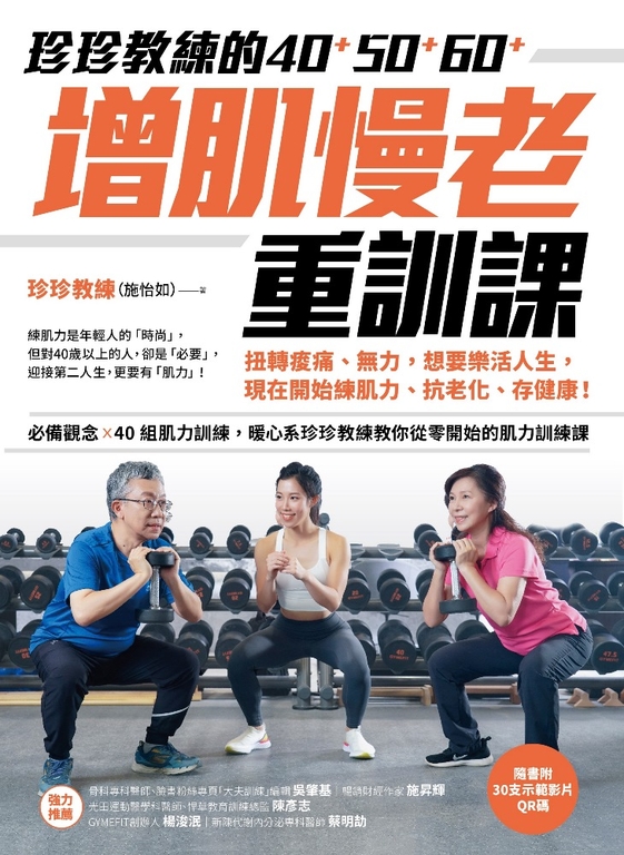 內容簡介 練肌力是年輕人的「時尚」,但對40歲以上的人卻是「必要」肌力不足,腰痠背痛、膝蓋痛、五十肩等,都會找上門迎接第二人生,除了要有「財力」,更要有「肌力」!◎ 珍珍教練寫給爸媽的重訓提案珍珍教練從北一女中、台大工商管理系畢業後,進入頂尖外商公司工作。和很多人一樣,開始健身單純是想減肥練體態,沒想到練著練著發現重訓對健康至關重要,於是轉職成為專職的健身教練,希望用她所學,幫助更多人改變人生。開始大力鼓勵熟齡世代必須練重訓,是因為阿公帶來的震撼教育。當她看到阿公手上端著一盤吉野家套餐卻行走吃力時,意識到這個「重量」竟會讓人感到艱難;看到阿公無法單腳脫鞋,才發現撐住自己身體重量,並非理所當然。而這一切,都和「肌力不足」有關!透過這本書,暖心的珍珍教練寫出學生的改變故事,完整拆解健身成功的公式,讓每個人都能得到適合的健身方針與鼓勵,即使第一次訓練也能立即上手,打造肌力、改善體態、樂活通通達成!◎ 翻轉肌力的故事透過案例的分享,看見不同族群的典型模樣,訓練前的猶豫與害怕、訓練後的改變與喜悅,希望藉由這些案例帶給更多人勇氣與信心!【案例一】五十肩的爸爸,肩關節不再疼痛卡卡珍珍教練的爸爸是暢銷作家施昇輝,也是個從來不運動的中年大叔,直到五十肩犯了,讓他開始踏上健身之路。藉由物理治療搭配運動處方,不僅恢復肩關節的活動力,甚至還能藉由機器輔助,做到當兵時的引體向上動作。【案例二】62歲的花市老闆娘,不再腰痠背痛,步伐變矯健在花市工作的老闆娘,常常需要搬重物,腰痠背痛是常態,還常被地上雜物絆到跌倒。她原本以為這些是「老了」的正常現象。透過深蹲練習,用大腿帶起重量,不再靠腰部力量搬東西,腰背痠痛大大減輕了。而腿部變有力了,也不再容易跌倒,以前很害怕跨越人行道上的鐵鍊,現在都可以輕鬆穩健的跨過了!【案例三】45歲的高階主管,練肌力意外找回腰身與活力邁入中年後肚子上的贅肉就如影隨行,狂練仰臥起坐也消不掉。透過足夠的肌力訓練、適當的飲食調整,沒有刻意練肚子,卻讓小肚腩消失了。也讓長年久坐辦公室而僵硬的肢體,恢復靈活,整個人精神體態變更好了!◎ 為什麼年紀越大越需要練肌力?四十歲開始,每年會流失1%的肌肉量,每十年就是10%。如果不想要肌肉財富逐年流失,就需要進行投資,而這項絕對不會虧本的投資標的,就是「重量訓練」。透過恰當的阻力,刺激肌肉量成長、讓肌力增加,是一種安全、有效增進身體能力的運動,是人人都可以做、也必須做的訓練。◎ 為什麼身體覺得痠痛,更需要練肌力?很多人會覺得,我的膝蓋痛、下背痛,是不是好好休息、不要活動比較好?但是很多時候的疼痛是因為姿勢不良、肌力不足所引起,反而需要透過訓練、強化肌力,喚醒原本偷懶的肌肉、減輕過勞肌肉的負擔,疼痛就會消除。舉例來說,膝蓋會痛,是因為它長期承受了太多壓力,只要把臀腿的肌肉練起來,即能保護膝關節、減緩不適。◎ 「四大動作模式」下手,任何年紀都可以從零開始練肌力透過四大動作模式,讓每個人都能快速掌握訓練重點。並鍛鍊到主要肌群,不管是以健身器材或居家訓練,都能達到鍛鍊效果。1、雙腳蹲站:利用深蹲、硬舉等訓練,鍛鍊臀腿肌群,讓起身動作靈活,不再擔心蹲下站不起來。2、單腳訓練:像是單腳硬舉、弓箭步,可鍛鍊單腳平衡力,幫助步伐穩健、不易跌倒。3、推:跪姿伏地挺身、啞鈴肩推等,鍛鍊胸肌與手臂肌群,讓上肢有力,保有推的力量。4、拉:像是坐姿划船、滑輪下拉,鍛鍊背肌與手臂肌群,找回身體正確姿勢、改善駝背。◎ 本書特色1、 打造肌力、改善體態:本書提出的訓練方法,不僅可以延緩肌力流2、 失,也能讓姿態、體態更好,兼具增強肌力、修身顯瘦的效果。3、 人人都可以做的訓練:不管幾歲、有無運動習慣、重訓經驗,或是想要瘦身、改善身體狀況,這本書都能陪伴你、帶領你從零開始。4、 深入人心的案例分享:教學經驗豐富的珍珍教練,帶領過不同年齡層的學生,深知在訓練過程中會遇到的挫折與轉變,透過她的真實記錄,希望讓大家知道:只要開始,就能感受到身體的回饋!