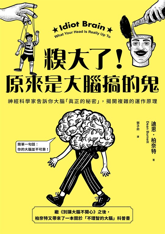 內容簡介 「簡單一句話:你的大腦並不可靠!」——迪恩‧柏奈特最幽默的神經科學家迪恩‧柏奈特又來了!《衛報》點閱次數超過1100萬的神經科學家奠基之作! 一本關於「不理智的大腦」,最幽默、理性又超容易理解的腦科學書!Ø《圖書館雜誌》科學類推薦好書Ø 書評網Goodreads科學科技類好書決選Ø 亞馬遜4.5顆星好評Ø 衛報連載超過6年的專欄作家Ø台大心理系副教授 謝伯讓、清華大學生命科學院助理教授 黃貞祥可靠推薦深度分析大腦的六大面向:記憶、感知、智能、恐懼、性格、他人、健康★ 生活厭世很想躺平,但是我們真的可以不動嗎?★ 雖然移動和飲食是基本需求,但是腦部讓一切變得很複雜?★ 人類步行時竟然可以什麼都不想? ★ 為什麼人類可以走路、開車,但是坐車會頭暈?★ 人一次只能記4樣物品,靠什麼方法可以讓大腦記更多?★ 嗅覺竟然比味覺強大,人能夠聞出的味道有1兆種?★人類記憶記錄下的經歷及知識是真的嗎?★壓力會增加工作表現是怎麼一回事?在衛報上連載「翻轉大腦」專欄超過六年的專欄作家迪恩.柏奈特,同時也是一位神經科學家,針對人類最神秘的器官「大腦」,進行一趟幽默詼諧易懂的科普旅程。大腦是意識的所在,也是所有人類的引擎,但它混亂、容易出錯和雜亂無章。比如說你知道你的記憶是不客觀的嗎? 陰謀論和迷信是健康大腦的必然結果? 或者酒精真的可以提高你的記憶力? 在《糗大了!原來是大腦搞的鬼》中,柏奈特解釋了人類大腦的所有缺陷,以及它們如何影響我們所說、所做和經歷的一切,且大力的讚揚這些優缺點。這本書以神經科學研究為基礎,並用有趣、輕鬆易讀,且具象的比喻方式讓你一秒就懂大腦的運作方式!非常適合想知道為什麼你的大腦似乎一心想要破壞你的生活,以及大腦到底是什麼鬼東西的人。國內好評ü謝伯讓(台大心理系副教授/《大腦簡史》作者)ü黃貞祥(清華大學生命科學院分子與細胞生物研究所助理教授)——可靠推薦國際好評-「真的很欣賞柏奈特的作品,他是個引人注目、明智又理性的人!你知道你可以相信他,也相信他的作品是非常值得閱讀的。」—喬恩.朗森(Jon Ronson),作家、記者-「經過專業的研究和有趣的寫作,這本書適合任何一位想知道為什麼他們的大腦似乎在破壞他們的生活,以及大腦究竟在做什麼的人。」—衛報-「神經科學家迪恩.柏奈特是《衛報》的一位廣受歡迎的科學專欄作家。 在這本有趣而引人入勝的書中,他採用了神經科學的最新研究,並加入了一些幽默來研究我們的大腦如何以及為什麼會破壞我們的行為。」— 宇宙雜誌(Cosmos Magazine)-「這是本非常完美的神經科學入門介紹書,也值得推廣給大家閱讀」—獨立報-「通過神經科學進行有趣的玩耍,對大腦和我們瘋狂行為的起源充滿了迷人的洞察力」—蓋雅.文斯(Gaia Vince),《人類世中的超越與冒險》作者-「對記憶的工作方式、恐懼和驚恐發作、對被欺騙或抑鬱的敏感性,以及人類感官的奇蹟進行了富有啟發性的討論」—華爾街日報