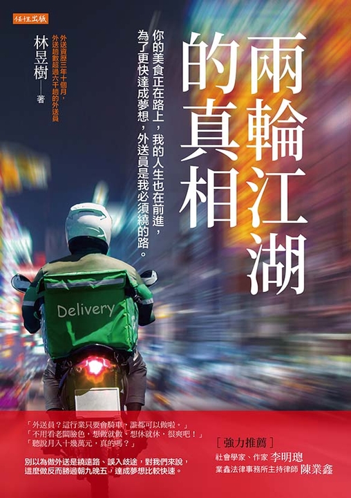 內容簡介 外送資歷3年10個月,外送次數超過6,600趟的外送員親自執筆, 揭開兩輪江湖之中,你想知道的真相。 作者林昱樹,今年29歲,國立大學資訊科系畢業, 夢想是存夠資金,開一家傳承阿嬤44年手藝的客家傳統小吃店, 和成為潛水教練。 剛畢業時,他為了快速達成夢想,誤走捷徑, 「港股投資」、「博弈遊戲」、「點數卡」……統統都試過, 結果被騙走至少80萬元,從小存到大的紅包錢、零用錢,幾乎歸零。 他只好從頭開始,一天做兩份工作, 早上在早餐店打工,中午到韓式料理店上班到晚上10點, 好不容易存夠了一點資金,就跟媽媽一起微型創業,擺攤賣麵線, 沒想到媽媽竟累出病來,「小腦中風」只能收攤。 他只好加入時間彈性的外送員行列,一邊賺錢一邊照顧媽媽。 「你當外送員?這行業只要會騎車,誰都可以做吧。」 「不用看老闆和主管臉色,想做就做想休就休,很爽吧!」 「聽說月入十幾萬,萬一外送時遇上阿姨,就可以不用努力了,真的嗎?」 每回聽到廣大鄉民這樣討論,讓林昱樹哭笑不得, 他決定把跑外送3年10個月、訂單超過6,600份的所見所聞統統寫出來: 打開手機訂餐,你的美食正在路上,我的人生也在前進, 別認為我繞了遠路,更別誤以為我的工作入了歧途,對我來說, 這麼做反而勝過朝九晚五,達成夢想比較快速。 .外送這行有門道,月入6萬要很拚 基本單價、雨天獎勵、地區加成、熱點加價…… 計算很複雜,有些看得到、但不一定吃得到! 送的距離越遠,賺越多?錯!距離和油錢有關連,收入如何最大化? 還有,有一家綠色的外送平臺,總公司根本不在臺灣, 一切都靠線上教學。 .外送配備百百款,這樣裝載才穩當 如果說武林有五大門派,那麼,全包、小包、歪包、正包、空派, 就是外送箱的五大派系。載哪種包包的人最厲害?還有, 壽司、蛋糕都是外送員眼中最會飛的餐點,另一個是麥當勞的飲料蓋。 .有些即刻救援,只有外送員能幫你 有個訂單的外送地址竟然是:「請送衛生紙到○○賣場B1的男廁」, 因為某人上完廁所才發現沒有衛生紙。真的有外送員接單嗎? 學校不准外送員進入校園,學生就寫: 「請把餐點送到校門口右邊第5支電線桿等我。」啊郎勒(人呢)? 還有,代收的客戶不是人,而是一隻狗, 客戶的備註是:「謝謝,請把食物放在柴犬的眼睛看得到的地方。」 .外送是江湖,真實水滸傳 遇到超遠的山上訂單,一邊幹,我會一邊思考未來, 送到豪宅社區,除了羨慕別人,還順便參觀一下哪棟的公設比較強, 碰到客戶留言「不想努力可以送上樓」,我開始幻想,真的可以不用努力了嗎? 客戶千百種,認真你就輸了。 有人為了溫飽、有人為了還貸款、還有人是為了等待下一個工作機會, 打開手機接單,你的美食正在路上,我的人生也在前進, 為了更快達成夢想,外送員是我必須繞的路。