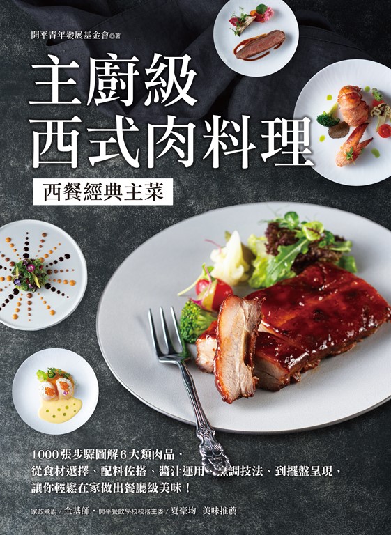內容簡介 史上第一本!由30年料理經驗的專業主廚親自傳授, 如何在家做出「西餐經典主菜」的美味食譜全示範! 家政煮廚 金基師 開平餐飲學校校務主委 夏豪均 好評推薦! 從如何煎出牛排軟嫩可口的熟度、做出無腥味羊肉,到快速掌握豬肉好吃的祕訣, 端出令人驚艷又吮指的酥炸德國豬腳、香煎羊排, 以及油封功夫鴨腿、白酒奶油燴雞、嫩煎鮭魚、干貝與龍蝦, 完整收錄50道最受歡迎的餐廳級西式肉料理。 不論是初學者想要瞭解烹調步驟,或是想要做出絕美菜色與擺盤, 本書濃縮了西餐料理的精華, 精準剖析把料理做得更好吃的每一個重要環節, 教你一次學會不同的肉品牛、豬、羊、雞、鴨與海鮮的正確烹調技巧, 在家就能完美複製出職人級的美味! 吃飯,聽起來再單純不過, 但為什麼只要一聽到是要去餐廳吃,就會讓人有所期待,甚至開心的不得了呢? 或許是因為,我們所期待的是看到,那美得像一幅畫的菜端出來的瞬間, 也或許,我們等待的是,那一份足以讓味覺怦然心動的「好味道」! ★本書從如何在家就能輕鬆做出好味道的基礎開始教起! 想要在自己的家裡成就這份美好的滋味,並沒有想像中那麼困難, 有時,就是能跟家人一起採買、刷洗、分切、入鍋、調味、擺盤的過程, 有時,就是大家一起動手料理,用美食的調味,讓生活變得更有滋有味, 然而其中最重要的理由,就是能夠順應自己味蕾的取向,去豐富餐桌的每一道食物! 而所謂的「餐廳級的美味」,其實並沒有放諸四海的標準, 但只要把握先從瞭解食材、選對食材,以及如何正確的清除肉腥味, 到美味呈現的幕後功臣,也就是高湯的製作、配料的調製,以及醬汁的運用等等, 就可以朝自己喜歡的方向去自由發揮, 料理出一咀嚼就能分泌幸福多巴胺的好滋味! ★完全圖解西式肉料理的製作方法,以及變化味道的美味方程式! 要怎麼做,才能在家做出餐廳等級的好味道? 可以在「完備基礎知識」與「瞭解製作原理」這兩件事上更具足, 本書不僅完整呈現烹調不同食材、不同部位,需要的火力、時間與油溫, 同時也提供最完整的技巧示範與細節解說,實作操作須知, 完整解答製作過程中的每一個疑惑,全部圖解、不藏私的傳授! 把到餐廳「開心吃頓飯」的喜悅,完全複製在家也能簡單做到! ★完整收錄50款西餐經典主菜,1000張步驟圖解讓你在家輕鬆做出餐廳級美味! 這本書是專為初學者量身打造,從食材選擇、配料佐搭、醬汁運用、烹調技法到擺盤呈現,50款餐廳級的美味肉料理,在家就能完美複製,做出專屬你味蕾的最愛! 本書特色 1.專業大廚教你做好西餐!不必花大錢上課,一次學會職人主廚才知道的西式主菜料理程序與呈現技法! 2.五十道經典西菜大公開!從煎牛菲力到德國炸豬腳,從油封鴨腿到煎龍蝦,一次學會備料與烹煮訣竅! 3.西餐的靈魂就在於醬汁!學會調製配搭牛肉、豬肉、羊肉、雞鴨及各種海鮮的佐醬,餐廳美味在家做! 好評推薦 ■「豐富的西餐肉類料理知識跟多樣化的主廚級食譜,開卷即受益的好書。」――家政煮廚 金基師 ■《主廚級西式肉料理》以肉料理為主題,用淺顯易懂的圖文說明西餐內蘊的許多工法重點,讓在家做出星級料理不再遙不可及。──開平餐飲學校校務主委 夏豪均