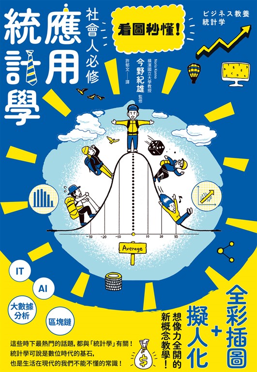 內容簡介 ~全彩插圖+擬人化=想像力全開的新概念教學~IT、AI、大數據分析、區塊鏈…… 這些時下最熱門的話題,都與「統計學」有關! 統計學可說是數位時代的基石,也是生活在現代的我們不能不懂的常識! Google首席經濟學家海爾.韋瑞安曾說: 「在今後的10年之內,最吃香的職業應該會是統計學家。」 ◆在任何事物都變成資料的現在,最冷靜、最值得依賴的知識就是「統計學」◆ 統計學是一門分析資料,找出潮流,窺見未來的學問。 在過去,是少部分專家才能從事的工作, 但現在已是誰都能輕鬆地將這世界的一切轉換成資料,資料源源不絕湧現的時代, 所以能正確地分析與活用資料,是讓生意快速發展的捷徑,也是左右未來的轉捩點。 若問現在最新的科技是什麼,大部分的人應該會想到AI、大數據分析、區塊鏈,對吧? 但這些最新技術都需要處理大量的資料,也都與統計學的概念或邏輯密不可分, 要想進一步了解這些技術,有效率地應用它們,就必須具備統計學知識。 不過就現況而言,正確了解統計學的人比需求來得少, 所以先學會統計學,就能在未來的職場佔得上風。 ◆要解讀數據背後真正的涵義,你必須要懂「統計學」◆ 我們的生活周遭充斥著各式各樣的數據,例如── .棒球的打擊率 .電視節目的收視率 .捷運站距離和房屋租金的關係 等等 而這些數據都是用統計學計算出來的。 本書透過生動具體的插圖,將統計學的概念「圖像化」, 讓你不用再跟複雜的文字敘述、有聽沒有懂的術語苦苦奮戰, 發揮「想像力」就能學會基礎概念! 還利用「擬人化」的方式,幫助各位掌握統計學的重要基礎── .【常態分布】是統計學的國王,能帶給我們俯瞰全局的視野 .【二項式分布】是統計學王子,次數一多就接近常態 .【推論】是超能力者,可以從部分窺見全部,從現在預知未來 .【檢定】是捕快,以統計的方式幫助判斷 .【相關性】是名偵探,負責找出事件之間的關係 透過這種新概念教學方式, 讓你對統計學的理解不只停留在表面,還有辦法運用自如! 從此之後,統計學將成為你在職場上的神隊友!本書特色 ◎將統計學的概念全部「視覺化」!看不懂公式沒關係,看圖就秒懂。 ◎解說統計學在教育、金融、製造、政治、醫療、不動產等業界的多元應用。 ◎解說統計學與「AI」、「大數據分析」、「區塊鏈」這些最最尖端科技的關係。