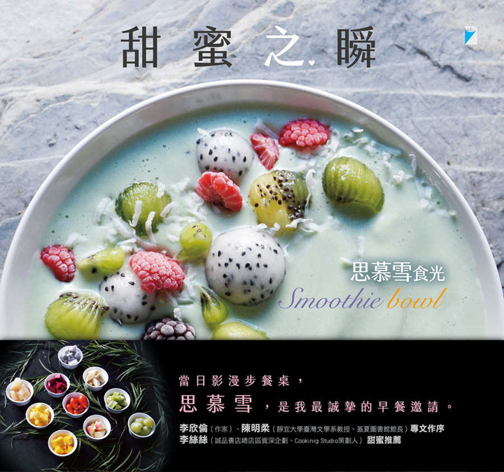 內容簡介 當日影漫步餐桌,思慕雪,是我最誠摯的早餐邀請 。 「跟喜歡的人少吃一頓,就真的少一頓了。 每一頓早餐,都是偷來的時間, 像是平常之外的禮物驚喜,更令人感覺美好。」──〈偷來的時間〉 在料理台上找到安定心緒的瞬間, 在碗中,開出一片花園風景。 一天,悠緩開始── 藍莓從攪拌機傳來灌木叢裡的漿果味;《碧海藍天》那片深邃海藍,在碗裡重現。芭樂片擺成雪中搖曳的山茶,開得恬靜安然;撒入紫蘇花,讓涼風吹來一絲細微的花香…… 思慕雪(Smoothie bowl)是餐桌上的一方美好景致,也是每天的假日感早餐。邀請喜愛的人共桌,以無油、零負擔的料理方式,擴充味蕾的習慣,藉不受拘束的擺盤,延伸對食材的想像。本書特色 1.散文式食譜,以優雅姿態輕鬆做早餐,優雅過生活。 2.是甜點,是綜合蔬果穀類餐,更可以是一碗充滿水果的沙拉。 3.食材、作法簡單,不需料理技巧即可完成,手拙也OK。名人推薦 ◎李絲絲(誠品書店總店區資深企劃、Cookinig Studio策劃人)甜蜜推薦 ◎「黃色的、粉色的、綠色的、藍色的思慕雪,透過紙頁對我發出了閃閃召喚,不僅是『吃我吃我』,而是『看看我,看看我』。思慕雪帶來了甜美瞬間,五感滿足,日日好日。」──李欣倫(作家) ◎「與其說這是一本食譜書,我更願意看作是三個具有美的靈視之眼的作者,以食材、以文字、以攝影,力行五感全開的生活美學,自此美不是外於生活的鑑賞,而是日常可即可食的饗宴。」──陳明柔(靜宜大學臺灣文學系教授、蓋夏圖書館館長)