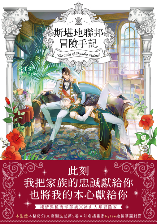 內容簡介 ★耽美作家本生燈本格奇幻BL高潮迭起第2卷★特邀知名插畫家Rylee繪製華麗封面★純情異種海洋部族 ╳ 冰山人類冒險家----------------「此刻,我把家族的忠誠獻給你,也將我的本心獻給你。」深海漁人部族的司祭皮拉歐,與人類狩獵者哈德蘭及其伙伴,經歷橫越山嶺與沙漠的重重冒險,終於取得修復「藍金豎琴」材料的藍玫瑰。就在準備出發尋找下一個修復材料之際,他們意外收到聯邦社交季邀請,前往哈德蘭的家族宅邸埃德曼莊園。看似華麗奢靡的日夜宴會,實則暗藏圍繞著漁人與傳說中三神器,諸貴族間明爭暗鬥的重重殺機……另一方面久違回到童年居所的哈德蘭,被迫面對過去傷痛以及各懷鬼胎的多方角力,不禁逐漸對皮拉歐的熱烈追求卸下心防。兩人奮不顧身、烈火燎原的激情,卻與斯堪地大陸的詭譎情勢緊緊相繫──
