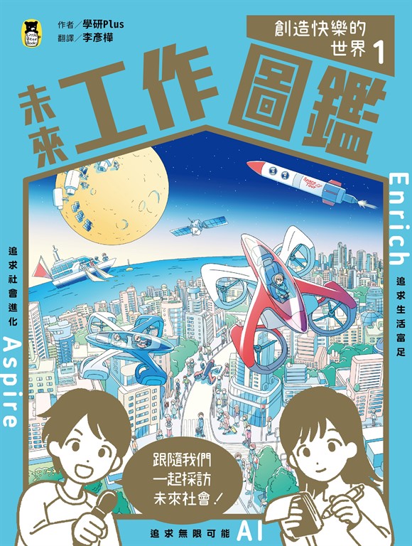 內容簡介 超前部署,和自己相約在未來! ★科技不再是電影情節,打開未來工作視野的科技素養繪本★★結合科技面與產業面,提早讓孩子與未來的工作型態接軌★★一場生涯教育真人實境秀,鼓勵親子共同探索未來的職業和志向★★扣合SDGs永續發展目標「良好工作與經濟成長」,打造想要的未來★ 你有沒有想過,未來的工作型態、社會樣貌是什麼樣子? 以下這些本來以為只是科幻電影裡的情節,可能已經成為現實! ◎製造從日本東京到美國洛杉磯只要兩個小時的超音速客機? ◎可以像鋼鐵人一樣飛天的噴射服裝? ◎用衛星就可以清除太空垃圾? ◎到月球生活不是夢? ◎分身機器人可以幫忙上街買東西? ◎用腦波就可以溝通? ◎利用空氣振動讓虛擬實境擁有真實觸覺? 你聽過「太空垃圾清除衛星研發者」、「月面開發工程師」、「分身事業統籌規畫者」、「腦神經行銷顧問」嗎?是的,這本書裡提到的每一種工作,都真的有人正在做! 你想像中的未來世界可能就像科幻電影:汽車在天上飛,有些人住在月球,用機器人來採收農作物,有分身機器人幫忙上街買東西,靠腦波來控制電腦……這些令人瞪大眼睛、嘆為觀止的未來技術,其實已經有人在實際進行研究和發展。人類的進步,正是靠著這一群「讓未來化為現實」的人,不斷實驗、研究和開發,不怕被嘲笑是異想天開,為了實現未來而努力! 未來並不遙遠,我們每一個人都有可能是這些先進科技的使用者、甚至是研發者! 本書介紹「科技領域」中的交通工具、前進太空、月面生活、機器人、影像技術、農漁業、腦部科技7種未來工作型態,透過14位相關工作者的專訪和問答分享,就像探訪未來的科技社會,來到新奇的工作場域,認識引領人類未來的專門行業,包括他們的職業祕辛、入行門檻、專業領域、求學歷程與圓夢的甘苦談等等,讓未來工作的樣貌變得具象而清晰。 藉由與未來職業的真實交流,可以幫助孩子探索自我興趣,培養自主學習的態度,拓展知識與夢想的視野,提前訂定職涯方向;也推薦給想要了解未來產業趨勢的成年人,作為超前部署的未來職業指南! ※「未來工作圖鑑」系列(全2冊) 《未來工作圖鑑:1創造快樂的世界》 《未來工作圖鑑:2打造安心的日常》 本書特色 ●拓展未來視野的科技素養繪本 未來世界也許就像科幻電影:汽車在天上飛,機器人滿街跑,有些人住在月球……這些先進科技已經有人在研究,讓我們對科技社會有更多的認識與理解。 ●一場生涯教育真人實境秀 介紹「科技領域」中的交通工具、前進太空、月面生活、機器人、影像技術、農漁業、腦部科技7種未來工作型態,揭開孩子對未來世界的想像,讓生涯探索更有趣! ●邀請在線工作者進行親身訪談 每一種未來工作型態介紹2個相關工作、共14位在線工作者,透過一問一答的訪談,就像來到實際的工作場域,彷彿在與前輩聊天,從他們的職涯履歷和研發過程中,習得未來工作所需的知能與解決問題的能力。 ●延伸知識小專欄 「未來或許會有這樣的工作」:以插畫呈現各種未來創意,面對科技可能將有的突破和進步,幫助家長引導孩子思考迎接AI社會的正確心態。 「未來關鍵詞」:透過了解各種相關詞彙的意義,探索未來工作型態的面相。