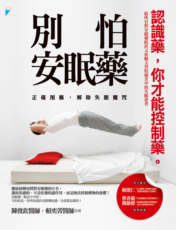 內容簡介 安眠藥一點也不可怕,可怕的是,你所知道的安眠藥知識,全部都是錯的!認識藥,你才能控制藥。給所有對安眠藥陷於又依賴又害怕痛苦中的失眠患者徹底扭轉坊間對安眠藥的汙名。讓你焦慮的,不是吃藥的副作用,而是無法控制藥物的恐懼!★ 賴德仁教授(中山醫學大學暨附設醫院精神科教授暨主治醫師、台灣精神醫學會理事長、台灣老年精神醫學會理事長、台灣失智症協會理事長)◎專文撰序★ 蔡香蘋(生活調適愛心會前理事長)、簡錦標(馬偕醫院精神科榮譽教授,前市立療養院理事長)◎誠摯推薦別再受媒體「最新研究」推波助瀾的恐嚇了!吃安眠藥會致癌?吃安眠藥導致夢遊?吃安眠藥容易成癮?吃安眠藥會引發失智症?吃安眠藥過量,會導致死亡?======================================================================如果上面敘述你都點頭,那你對安眠藥的認知,還停留在20年前!2014年,台灣人服用的安眠藥創下 3億3千9百萬顆的紀錄,與前年相較,多出1200萬顆,相當一座雪隧的長度,但我們對安眠藥的知識卻遠遠不足,錯誤的老舊觀念,使得醫師小心翼翼開藥,病人吃得提心吊膽,結果,療效更有限。現代人壓力爆表,失眠是大多數人的共同經驗。面對安眠藥,與其抱著錯誤認知服藥,或因恐懼而拒絕服藥,不如好好了解安眠藥。當21世紀已邁入第16年,我們對安眠藥的理解,更該徹底升級!《別怕安眠藥──正確用藥,解除失眠魔咒》是杏語心靈診所院長陳俊欽醫師和賴奕菁醫師針對失眠患者所量身打造的一本書。在這裡,安眠藥首次得到了最公正的評價,最詳細的介紹,無論是它們的種類、成分、效果、服用方式,甚至病人在面對藥物時的心理,都有鉅細靡遺的剖析,不僅破除大眾多年來對安眠藥的錯誤迷思,失眠患者更可以正確地評估自己的需求,安心吃藥,找回美好人生。