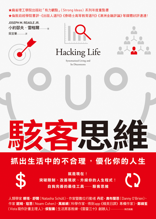內容簡介 ★麻省理工學院出版社「有力觀點」(Strong Ideas)系列年度重點書★倫敦政經學院書評、《出版人週刊》《泰晤士高等教育週刊》《澳洲金融評論》等媒體好評連連!★娜塔.舒爾(人類學家)、丹尼.奧布蘭恩(作家暨數位行動者)、諾姆.寇恩(作家)、羅振宇(羅輯思維創辦人)、萬維綱(科學作家、得到app《精英日課》專欄作家)、李忠憲(成大電機系教授、《隱性反骨》作者)、鄭緯筌(Vista寫作計畫主理人)、侯智薰(podcast「雷蒙三十」主理人)、Zoey(遊牧工作者、《啟動遠距工作,設計你的理想生活》作者) 邀請你一起擁抱駭客思維!就是現在!突破限制、改善現狀、升級你的人生程式!自我完善的最佳工具──駭客思維生活駭客,是一群充滿熱情、專注解決複雜問題、堅決自我完善的創意階層!生活駭客,是一群敢於嘗試,懂得另闢蹊徑,企圖優化一切的人!說不定,你早就是個稱職的生活駭客而不自知?□ 應用各種整理術清理多餘物品,讓居家環境整齊舒適。□ 配戴智慧手環或透過app追蹤體溫、心率、脈搏、走路的步數。□ 為了健康,減醣、減脂或服用營養補充品。□ 為了提升效能而使用某種工作術,例如番茄鐘工作法。□ 找出更有效、更適合的方法,增進與他人的溝通。□ 擁抱許多讓身心靈更平靜安詳的建議,並身體力行。生活駭客四大特色:一、個人主義:自己的事自己決定二、崇尚理性:重視原理和技術三、重視系統:試圖找出更好的規則四、熱衷嘗試:不斷尋找優化的可以只要掌握駭客思維,就能成為創造未來的「生活駭客」!「如果○○的話,就可以解決/改善□□的問題」是「駭客思維」最具體而微的描述。不論是否精通電腦或資訊系統,只要將駭客思維運用於生活各層面、熱衷於自我完善,並樂於分享的人,都能稱為「生活駭客」。本書從「駭客」的原意出發,帶領讀者在了解之餘,也激起更多好奇,並一同反思在強調個人的數位時代,如何與世界這個巨大的系統更和諧地共存。