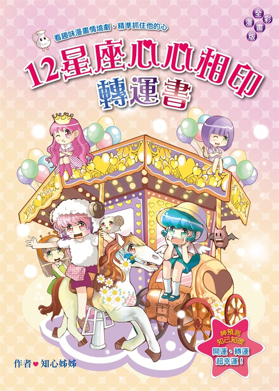 內容簡介 (1)本套書為大受好評的〈好好玩心測遊戲書〉系列姊妹作,同樣融入教育內涵於命理、占卜主題內,讓小朋友邊玩「占心」,邊培養自我認知及正向思考力,是寓教於樂的高質感魔法遊戲書。(2)全彩劇情漫畫結合情境小劇場,加上畫龍點睛的小提醒──「知星轉運站」,和有趣的繪畫練習、開運妙法、健康教室等特別企畫內容,搞懂星座的同時,也享受閱讀上的豐富、好玩!(3)情境劇模式讓讀者秒懂各星座的性格特徵,比傳統直敘法的解說更易理解,全面徹底了解身邊的你、我、他!(4)囊括十二星座基本個性解析、特點與好惡、人緣與相處模式、健康與體質,以及開運妙法等多樣化主題,趣味性十足。◎ ◎國小中、高年級以上適讀神祕魔法小心機‧全面占靈你的心〈好好玩心測遊戲書〉超強姊妹作!各種占卜、心理分析技巧全面企畫~~----------------------------------------------------------------劇場漫畫新型態‧知星御守幸運物神預測知己知彼,開運、轉運超幸運!!星座叮嚀小提醒,一秒搞懂來自星星的你!請告訴我各星座的特點與好惡?請問不同星座的人緣與相處模式?超好奇各星座的健康和體質狀況……12星座疑難雜症看這裡,就讓知心姊姊告訴你!個性地雷技巧性避開,不必沙盤推演最感心※劇情簡介:星座概念太複雜,好友過招~~誰高誰低分不清?不用擔心解說太嚴肅,來看12星座小人兒飾演的占星趣味情境劇,只要對方一個小動作,立刻讀懂他的心!輕鬆搞懂12星座沒問題,新型態漫畫劇場猜心神書~~等你來Get最知心!*書系特色對認識自我、命理占卜有興趣嗎?〈好好玩占心魔法書〉是一套深入淺出的命理最佳入門書,用漫畫方式輕鬆說明,圖解技法一看就懂,好學、好上手,連小學生也能理解,立刻變身小小占卜師!囊括命理、占卜、心理、個性解析……所有熱門主題,結合趣味小遊戲或小測驗等開胃小菜,好讀、好入口,並寓含認識自我及品格教育的正面思考,占心同時修正個性中的缺點,是最適合小朋友閱讀的品格教養娛樂讀物!*本書目錄認識本書的12星座代表人物……12星座個性觀測站Part1 12星座個性完全解析你了解自己與別人的個性嗎?認識牡羊、金牛、雙子、巨蟹、獅子、處女認識天秤、天蠍、射手、魔羯、水瓶、雙魚你能看出別人的好惡嗎?觀察牡羊、金牛、雙子、巨蟹、獅子、處女觀察天秤、天蠍、射手、魔羯、水瓶、雙魚Part2 12星座行為完全解析從反應也能看出個性喔!牡羊、金牛、雙子、巨蟹、獅子、處女的反應天秤、天蠍、射手、魔羯、水瓶、雙魚的反應如何看出不為人知的心思?牡羊、金牛、雙子、巨蟹、獅子、處女心思解密天秤、天蠍、射手、魔羯、水瓶、雙魚心思解密Part3 12星座人緣完全解析怎樣才能和各星座相處融洽?牡羊、金牛、雙子、巨蟹、獅子、處女交友喜好天秤、天蠍、射手、魔羯、水瓶、雙魚交友喜好哪個星座的人緣最棒呢?牡羊、金牛、雙子、巨蟹、獅子、處女的人氣指數天秤、天蠍、射手、魔羯、水瓶、雙魚的人氣指數Part4 12星座健康完全解析什麼星座的人容易發胖?牡羊、金牛、雙子、巨蟹、獅子、處女的發胖原因天秤、天蠍、射手、魔羯、水瓶、雙魚的發胖原因什麼星座的人是健康寶寶?牡羊、金牛、雙子、巨蟹、獅子、處女的體質強弱天秤、天蠍、射手、魔羯、水瓶、雙魚的體質強弱Part5 12星座開運大寶典幸運季節大圖解誰是你的幸運之星?運氣大逆轉的風水適合你的開運小魔法【知星轉運站】來畫可愛的星座吉祥物如何討好各星座的人?12星座魅力排行榜增強人緣的可愛魔法12星座健康小叮嚀12星座的健康教室12星座的幸運星【心心相印TEST】大家來找碴
