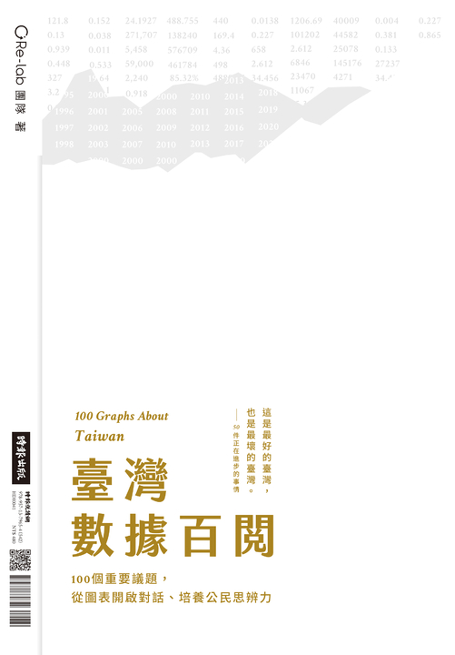 內容簡介 ★★ 公部門數據大改造!讓你一眼看懂臺灣社會的變化 ★★★★知名資訊圖表設計公司Re-lab全新著作 ★★由年輕人發起的實驗性計畫歷時一年蒐集彙整公部門與國際組織報告用數據力與設計力,讓臺灣變得更好—▍在圖表中,尋找改變的力量! ▍數據不只是數字,折線的背後,是我們生活的高低起伏『這二十年來,你過得好嗎?』『臺灣,你好嗎?』 ──────寫給罵過、怨過、失望過卻依然愛著臺灣的你 ──────這些事,也許令你擔心……˙兒虐案件逐年減少,但因為兒虐死亡的孩子卻不減反增˙各縣市皆宣示要拆違建,但歷年累積的違建卻愈來愈多˙農耕土地面積減少了,但平均農藥使用量卻反而增加˙禁供塑膠袋、吸管…….限塑推動十六年,塑膠袋產量卻沒有減少˙民主選舉超過二十年,但每到地方選舉年賄選案件卻仍居高不下但這些事,也反映臺灣正在進步……˙犯罪率逐年降低,過去十年竊盜案件更大減70%˙勞動法規逐年完善,超時工作者的比例逐年減少˙不只失業率降至二十年的低點,失業者中長期失業超過一年以上的比例也創十年新低˙實質薪資停滯二十年後,近五年再次出現成長趨勢˙工業及養豬廢水漸受管制,2002年以後河川嚴重污染比例大幅下降這是最好的臺灣,也是最壞的臺灣採【雙面書封設計】你可以從頭從尾開始翻閱自始至終不要放棄愛這座島嶼的心◎ 瞭解臺灣必讀的懶人包 ────── 三分鐘看懂一個數據、明白一個議題2020年我們即將選擇的,不只是總統和立委,更是對臺灣未來的想像,如果我們對過去與現況不夠了解,就容易造成偏見或誤解。因此,一群由22歲到32歲、從小生長在臺灣的年輕人組成資訊圖表設計團隊,翻遍公部門和國際組織報告,將100個重要議題自2000年以來的發展,彙整成一目瞭然的圖表及深入淺出的文字,幫助我們跳脫個人意識或經驗,看見更完整的全貌。讓改變,從瞭解開始。◎ 關心臺灣不是說說而已 ────── 一個議題延伸一道思考題,如何貢獻自己的力量?Re-lab團隊從健康疾病、社會照顧、自然環境、文化休閒、教育研究、經濟發展、居住條件、公共安全、國際關係9大主題,引導讀者看見數據背後錯綜複雜的成因,並提出問題讓我們進一步思索解決方案。書中不會提供一個簡單的答案,而是把探索的過程整理成100條線索。 讓改變,從思考開始。◎ 找到一起守護臺灣的夥伴 ────── 從線下到線上企劃,開啟不一樣的對話《臺灣數據百閱》只是小小的起點。掃描書中QRcode,會帶我們找到更深更廣的國內外評論與成功案例分析,以及藉由聊天機器人,用輕鬆幽默的方式,持續關注有趣的臺灣數據和現況。除此之外,只要參與線上活動,就有機會跟各領域的專家或意見領袖共桌吃飯,用一餐飯的時間討論你感興趣的議題,開啟不同世代、不同觀點的交流。讓改變,從對話開始。▍專文推薦吳琬瑜 │天下雜誌總編輯李怡志│世新大學新聞系助理教授 ▍各界人士好評推薦Hauer │臺灣吧執行長李雪莉 │報導者總編輯 李取中 │The Big Issue大誌雜誌總編輯朱家安 │哲學雞蛋糕腦闆巫彥徳 │人生百味共同創辦人邵璦婷 │文化銀行共同創辦人林以涵 │社企流共同創辦人林冠廷│台客劇場導演林宗弘│中央研究院社會學研究所研究員胡川安 │國立中央大學中文助理教授胡采蘋(Emmy Hu)│財經媒體人施光訓 │中信金融管理學院校長柯伯麟 │玖樓共同創辦人陳雅慧│親子天下媒體中心總編輯楊斯棓 │方寸管顧首席顧問/醫師楊貴智│法律白話文創辦人蔡淇華 │作家劉必榮│東吳大學政治學系教授鄭國威│PanSci泛科學創辦人顏澤雅 │作家/出版人蘇仰志│雜學校校長(依姓氏筆畫排列)