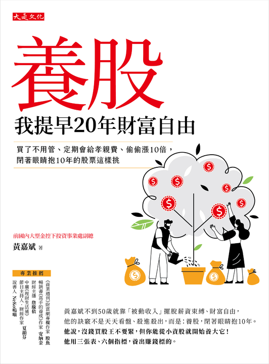 產品目錄 新版作者序 當養孩子已不再能防老,人生還是養股好推薦序一 知識隨處可得,養股智慧有賴良師傳授推薦序二 用基本面養股,幫你獲利超過100%,賺滿每一次的大波段推薦序三 站在風口上,豬都會飛!讓基本面帶你飛第一章 養股有三種,哪一種最適合我? 第一節 買了不用管、自己會長大:成長股 第二節 平時賺不多,但定期會送上孝親費:價值股 第三節 大家不看好的產業,卻偷偷漲10倍:轉機股第四節 用三張表養出好股票,賺價差也賺股息第二章 善用六大指標,小資股也能翻倍賺 第一節 營收不只看公司有沒有賺錢,要看用1元能賺多少第二節 別錯過每股盈餘逐季加速成長的大黑馬 第三節 中長期投資,用本益比找穩健成長股第四節 繼續加碼還是獲利了結?股價淨值比給你答案 第五節 股息殖利率,幫你挑出打敗定存的價值股 第六節 股東權益報酬率除以股價淨值比,才是真實的報酬率 第七節 九個觀察點,讓地雷股現形 第八節 透過財報徹底掃雷,比別人早一步避開陷阱股第三章 我這樣養股,打敗加權指數第一節 選標的靠自己,產業趨勢要聽專家的 第二節 賺滿波段不可不知的利率循環法 第三節 拆解三大產業,精準獲利第四節 階段性找「飆的」,打敗加權指數不是夢第四章 第一桶金,我這樣管理風險第一節 投資的第一步,存小錢或存零股? 第二節 減資是利多還是利空? 第三節 員工分紅費用化對投資人有什麼影響?第四節 用期貨、選擇權,看出行情區間 第五節 作帳行情有賺頭嗎?別追,平時養著的反而可賣 第六節 比檢視公司價值更重要的風險管理第七節 當行情急轉直下,哪種股票該養著?哪種股票得棄養?第五章 嚴守這些口訣,別人恐懼時我敢貪婪第一節 「有些股票是用來看的,不是用來買的」第二節 「掌握潮流又創造需求」,這檔股必賺!第三節 「長期持有是對的,但前提是獨占利基!」第四節 「不動作是思考後的結果,不是放著」第五節 「股息無法致富,卻能避免踩地雷」第六節 「等待不只是美德,是賺錢大絕招」第七節 「定期清持股,『賣太早』才好」第八節 「以期望報酬的三成,為停損點」第九節 「想搶反彈,你的手套得夠厚」