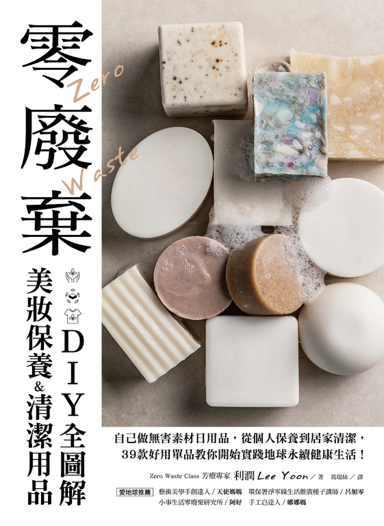 內容簡介 第一本以「零廢棄」概念自製美妝保養、手工皂清潔用品專書!★韓國YES24書網讀者5星好評★手工皂達人∕娜娜媽、藝術美學手創達人∕天使媽媽、小事生活零廢棄研究所∕阿好、零廢棄生活實踐者∕呂佳玲,齊聲推薦本書教你自製39款天然無毒保養品&生活用品實現零污染、零塑膠、健康無害,友善地球的「零廢棄」生活!▌為什麼自製美妝保養品、清潔用品,是邁向零廢棄第一步?你知道嗎?與我們息息相關的保養品、清潔液含有恐怖的化學成分不僅會累積體內造成健康受損,同時污染地球環境!本書作者以小蘇打、天然油類、酒精等無害成分製作化妝水、多功能護膚膏,以及洗髮皂、沐浴皂、洗臉皂、嬰兒萬用皂、寵物洗髮香皂等手工皂。此外,教你自製洗碗皂、固體牙膏、洗衣粉、柔軟精、抗菌噴霧等。自己做天然清潔用品不僅可以使堆積在身上的化學物質最小化,給肌膚最純淨的溫柔呵護,更能打造「零廢棄」生活!▌自製手工皂可以減少塑膠空瓶,環保愛地球、資源永續!書中自製美妝保養、清潔用品的盛裝用品,建議使用玻璃瓶、或選擇以「可分解回歸大自然」成分製造的產品,能明顯減少空瓶垃圾的產生。只要改變日常用品的使用習慣,就能保護家人的健康和地球。本書特色◎史上第一本!以「零廢棄」概念自製美妝保養、手工皂清潔用品專書!本書作者為芳療專家,關心健康生活也注重環境,4年前開始開設了「Zero Waste Class」,分享各種生活中實踐「零塑膠」、「零廢棄」的方法,並提倡用手工皂取代洗髮精、護髮素、沐浴乳等美妝保養品。此外,並教你自製洗衣粉、洗碗皂以及天然抗菌劑,不僅可以大幅減少家中所排出的垃圾,也讓你和家人們減少接觸界面活性劑、人工香料、防腐劑等有害成分。◎可量身訂做!詳解基礎油成分及精油功效,針對膚質做出專屬手作保養品!每個人的肌膚性質不同,適性搭配清潔用品,才能擁有「清潔同時保養」效果。書中每款洗髮皂、臉部和身體洗潔用品,皆清楚標示適合的髮質或膚況,詳細解說各種基礎油與精油的功效,讓你可以依據自身狀況選擇,功效、使用方式、保存期限也都有完整的說明,讓製作出的成品,更貼近你的需求,運用上也能正確且放心。◎用途最多元!沐浴保養用品、家事清潔劑、到寵物專用手工皂通通教你做!全書共39款美妝保養及清潔用品,功能包含化妝水、卸妝油、沐浴皂,以及清洗衣物、碗盤去污、抗菌噴霧等,甚至到寵物專用沐浴皆有收錄,每款都是針對抗敏、修護、去污或抗菌等不同目的精心設計的配方,讓你時時刻刻用無毒清潔用品對抗髒污和病菌,擁抱健康無毒的生活,只要掌握配方,就能自由創造更多讓生活純淨天然的選擇!名人推薦「自製健康且珍愛地球的清潔保養聖經,開啟零廢棄生活的首選入門書藉。」──環保署淨零綠生活推廣種子講師∕呂加零「自己做手工皂,不僅能讓身體遠離化學成分,還能夠減少污染、環保愛地球!現在,讓我們一起從日常用品開始,實踐『零廢棄』生活吧!」──藝術美學手創達人∕天使媽媽「地球只有一個,生活用品除了用買的之外,運用身邊的材料也可以隨手DIY、環保愛地球。」──手工皂達人∕娜娜媽「保持健康是實踐零廢棄的第一步,本書讓肌斷食和友善清潔成為輕鬆又美好的事。」──小事生活零廢棄研究所∕阿好讀者好評◎韓國讀者,強力好評:「除了如何自製保養品、日常用品外,這本書還介紹了如何實踐零浪費。對於那些剛開始零廢棄的人來說,它充滿了有用的內容。」- 치**자「當我開始有零廢棄的概念後,我把塑膠牙刷改為竹製牙刷,液體牙膏換成固體牙膏,但是價格也不斐,好在我接觸到了這本書。這是一本提供零廢棄日常用品的手作書,以便我可以零浪費地製作,使用需要的產品。這裡面的成分簡單,所以可以放心使用是最大的優勢。」-hyang「越來越多的人夢想著從事零廢棄的活動來照顧自己、照顧他人和保護地球。在這本書的開頭,作者寫道善待自己 善待他人 善待地球。為了使這些行為成為我們生活的常規,而不是一時的潮流,我們需要通過各種方式進行學習。這本書分為三個章節介紹詳細的食譜,例如保養品∕手工皂∕零浪費家政,是一本像教科書一樣的好書。」- s****0