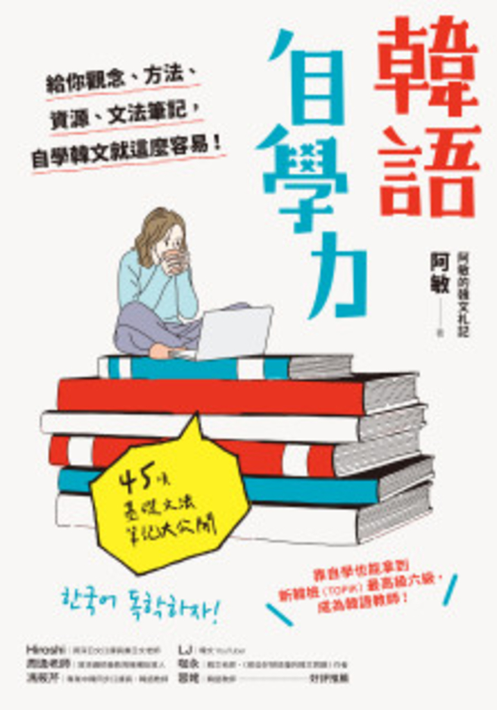 作者介紹 阿敏 新竹教育大學(現清華大學)應用科學系畢業,藉由自學通過新韓檢(TOPIK)最高級6級。曾任清大推廣教育中心、竹東高中、康乃薾小學等各教育機構韓語講師,亦開過多堂線上課程與YouTube直播課程,累積豐富教學經驗。 身為理科人,擅長邏輯思考,快速歸納出重點。藉此能將複雜的文法,用一目了然的方式整理出來,不僅成功自學韓文,還幫助許多學生輕鬆學會、愛上韓文。 目前同時經營社群Facebook、Instagram「阿敏的韓文札記」與YouTube「阿敏與雷吉娜的超有趣韓文 Learn Korean with us」,分享許多韓語學習資源。由於知道自學者沒有老師可以問的苦,希望藉由頻道讓大家少走冤枉路,節省獨自摸索的時間。