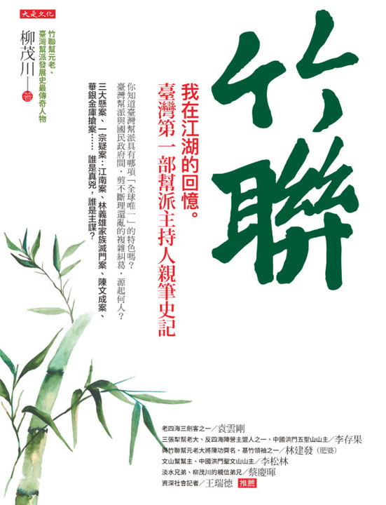 產品目錄 "推薦序一 冷兵器時代的戰術奇才──柳茂川/袁雲剛推薦序二 扭轉歷史與江湖的縱橫家,帶領竹聯崛起/李存果推薦序三 使竹聯走向崛起之路/林建發推薦序四 茂竹貫川岳,終究不凋零/李松林推薦序五 智慧加上得人心,真正大哥風範/蔡慶暉推薦序六 隱身幕後的精神領袖,為竹聯寫下歷史/王瑞德自序 我在江湖的回憶,替世界幫派史記一筆前言 熱血少年只知道義,部分幫派只看益第一部 只知道義氣的青春歲月第一章 竹聯幫與四海幫,最初都是學生幫派第二章 結盟就是兄弟,竹聯與文山的爭戰歲月第三章 正式加盟竹聯,組合反四海陣營第四章 矛頭對向盟友,演變為「四幫混戰」第五章 四幫混戰後,竹聯最大規模重整第六章 讓竹聯幫闖出名號的「對牛埔幫之戰」第二部 臺灣江湖要事──人在江湖,身不由己第七章 江南命案──一場情治機關的鬥爭第八章 四海與竹聯的最後一戰──東王西餐廳的對決第九章 手足相殘的歐帝威事件第十章 老舊黑社會幫派走入歷史前的最後掙扎──李存果報弟仇第十一章 四海陳永和被刺之謎第十二章 竹聯冷面殺手劉煥榮之死結語 艱難與不容易的歲月附錄 早期竹聯演變"