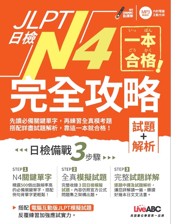 一本合格!JLPT日檢完全攻略(試題+解析)N4 (電子書)