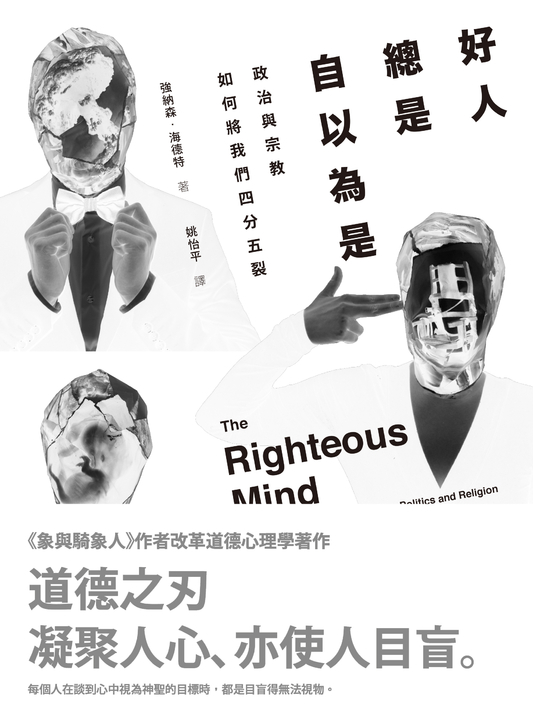 產品目錄 前言第1部 直覺先來,策略推理後到中心隱喻:心智一分為二,如同騎在大象上的騎象人,騎象人的工作就是服侍大象。1 道德從何而來?理性即為且應當只能為熱情的奴隸,除服侍聽命於熱情外,無法妄求他職。2 直覺的狗和牠理性的尾巴如果你想要改變對方的想法,就必須跟對方的大象談一談,引出新的直覺,而非新的論據。3 大象是主人人類祖先要生存下去,真相和名聲哪一個比較重要?4 請投我一票(原因在此)假使老鼠能按下按鈕,讓自己的獎勵中樞受到電子刺激,老鼠就會一直按到牠倒下餓死為止,好比極端的黨派意識可以讓人上癮。第2部 道德不光是傷害和公平而已中心隱喻:正義之心如同舌頭有六種味覺受體5 在怪異的道德觀之外吞下紅色藥丸,就能脫離母體讓幻覺消失;吞下藍色藥丸,意識就會回到那個相當愉快的幻覺裡。6 正義之心的味蕾道德猶如甜與苦、熱與冷之別,均來自每種感官或器官的特定感覺。因此,道德感應劃分為感性的味覺。7 政治的道德基本原則在左派的眼裡,公平往往意味著平等,但是在右派的眼裡,公平是指比例。8 保守派的優勢人類用武器和閒話來武裝自己,培養出結盟的能力,誰的行為要是威脅到群體其餘的人或單純使人不快,就會遭到羞辱、放逐或殺害。第3部 人類是百分之九十的黑猩猩加上百分之十的蜜蜂中心隱喻:道德凝聚人心卻也令人目盲9 為何我們的團體感這麼強?當團體裡的每個人開始共享意向促成道德母體的誕生,這就好比是人類演化史上「跨越盧比孔河」的重大事件。10 蜂巢開關我成為一顆透明的眼球;我微不足道;我看盡一切;普遍的存有在我的全身上下流動不已;我是上帝的一部分、一顆粒子。11 宗教是團隊運動不理性的信仰有時竟能幫助群體更理性地運作。神聖可凝聚人心,然後讓人在霸道的習俗面前目盲不視。12 為何不能化歧見為助力?如果你真的想要讓腦袋開放,先讓心開放吧。結語致謝參考書目圖片鳴謝