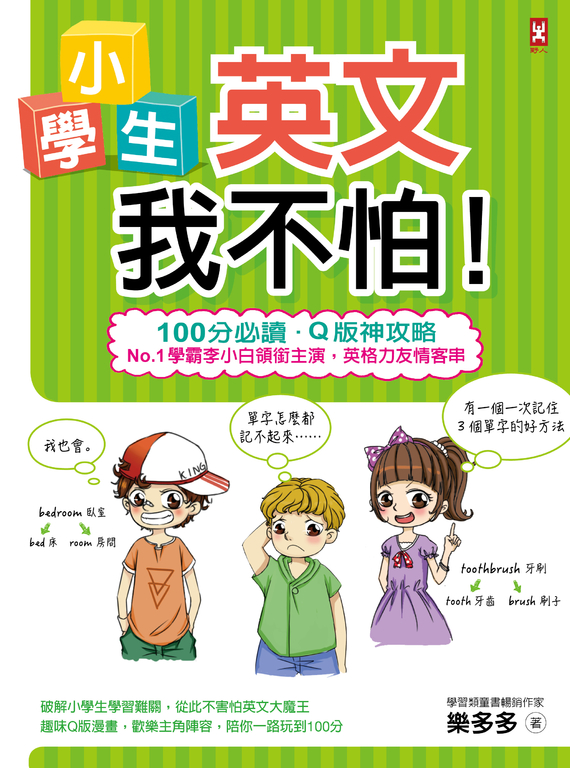 內容簡介 趣味Q版漫畫、歡樂主角陣容英格力挑戰英文接龍,No.1學霸李小白得冠軍──┤36招學英文神攻略├──破解「背單字」「記文法」「大小考」頭痛難題陪小學生一路玩到100分! 【適用】✔小學1-6年級自修 ✔家長伴讀 ✔教師備課 【能力培養】✔英文學習基礎概念 ✔單字高效記憶法 ✔釐清關鍵文法 ✔掌握重點句型 ✔考試答題技巧 歡迎來到「歡樂三人組」的抓狂英文課!從早自習開始就意外不斷,李小白心愛的寶物盒失蹤了,聽說裡頭藏著記單字的祕密武器;上課時間,英格力忍不住打瞌睡,卻被老師叫起來回答四大必考句型;高斯對著外國人雞同鴨講,還高興地以為自己英文很好…… 你是熱愛舉手搶答、考題難不倒的嗆辣小學霸「李小白」嗎? 還是選擇題不會寫,乾脆全部猜D的機靈頑皮鬼「高斯」? 又或是上課神遊,想著美食流口水的傻氣迷糊蟲「英格力」? 快加入這場小學英文大挑戰,讓Q版神攻略帶你英文LEVEL UP! ★小學英文神攻略‧教你見招拆招★ ◎單字太長了,老是記不起來? 》》只要用「合成¬-拆分」法,將較長的複合詞分解成兩個單字來記憶,就能一舉三得!例如:toothbrush(牙刷)就是由tooth(牙齒)、brush(刷子)組合而成。 ◎「My hair is longer than you.」這句話錯在哪? 》》看出來了嗎?相互比較的對象必須要對等,所以「我的頭髮」不能跟「你」並列。 ◎明明沒有not,為什麼這是否定句? 》》特別注意,如果句子中出現never、no、few、little等字,也可以用來表達否定的意思。 ◎「在樹上」到底要用in還是on? 》》屬於樹的一部份,用「on the tree」,如葉子、花朵;不是長在樹上,就要用「in the tree」,如小鳥、人。 ◎做聽力題也有小撇步? 》》搶先速覽題目,找關鍵並預測考點。聽力首尾兩句通常就是重點,一定要聽清楚!本書特色 1.〔生動故事+Q版漫畫〕專為小學生量身打造的「Q版神攻略」系列第一彈! 主角歡樂三人組正是三種小學生典型,故事情境幽默且切合日常生活,讓孩子在閱讀過程中自然留下深刻印象。 *系列書即將出版:《小學生作文我不怕!》、《小學生國語文我不怕!》、《小學生數學我不怕!》 2.〔超實用學習方法〕書中關鍵考試技巧與自學方法,不只是在小學階段為英文打下堅實基礎,在日後的學習之路上也都受用無窮。 3.〔自我評量小測驗〕每個章節都有多多老師為該單元特別設計的小測驗,書末附有參考解答,可以立刻檢測自己是否已經完全吸收、融會貫通。