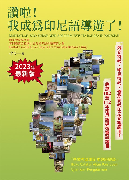作者介紹 小K曾在印尼工作過4年餘,熱愛傳統印尼文化,工作之餘足跡遍及印尼各地,驚艷於印尼自然人文風光與各地特色美食,因緣際會下報考印尼語導遊,幾經波折終於順利通過。外傳印尼文容易上手,文法規則相對簡單,但準備考試的過程卻發現台灣沒有足夠工具書,所以將自行蒐集資料、準備考試的筆記內容,重新編排整理,並收錄102至112年導遊國考筆試題目,同時補充有趣的台、印尼知識,以保有文法書的深度與專業性,又兼顧旅遊傳記的廣度與趣味性,希望有更多台灣人能加入旅遊業的行列。學歷工學士、企管碩士經歷工作32年退休,曾經外派印尼4年餘LINE社群網址讚啦!我成為印尼語導遊 司法通譯了!電子郵件[email protected]
